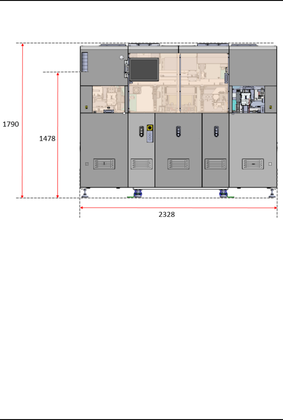 FlexTRAK-OH Material Handli ng System IOM Manual Specifications 8-4 © 2023 Nordson C orporation 8.4 System Dimensions 8.4.1 Front View Measurement unit : mm Figure 8-1 Front View Dimensi ons