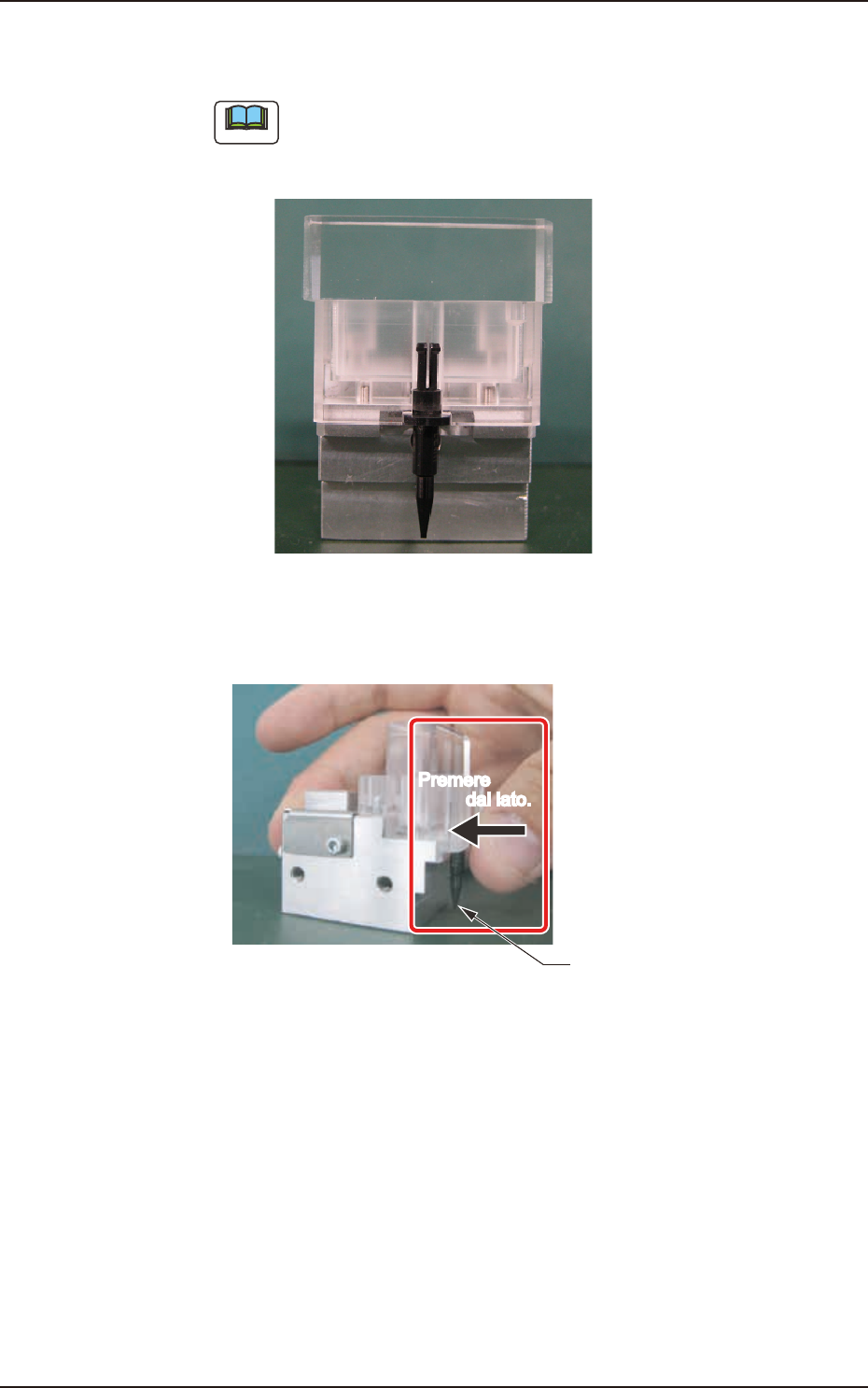 4OM-1482 1-66 1304-001 (5) Spingere la sezione di scorrimento verso l’estremità del blocco acrilico e inserire il ltro dell'ugello. Estremità del blocco acrilico Sezione scorrevole Spingere F4A59 5.7 Procedura di i…