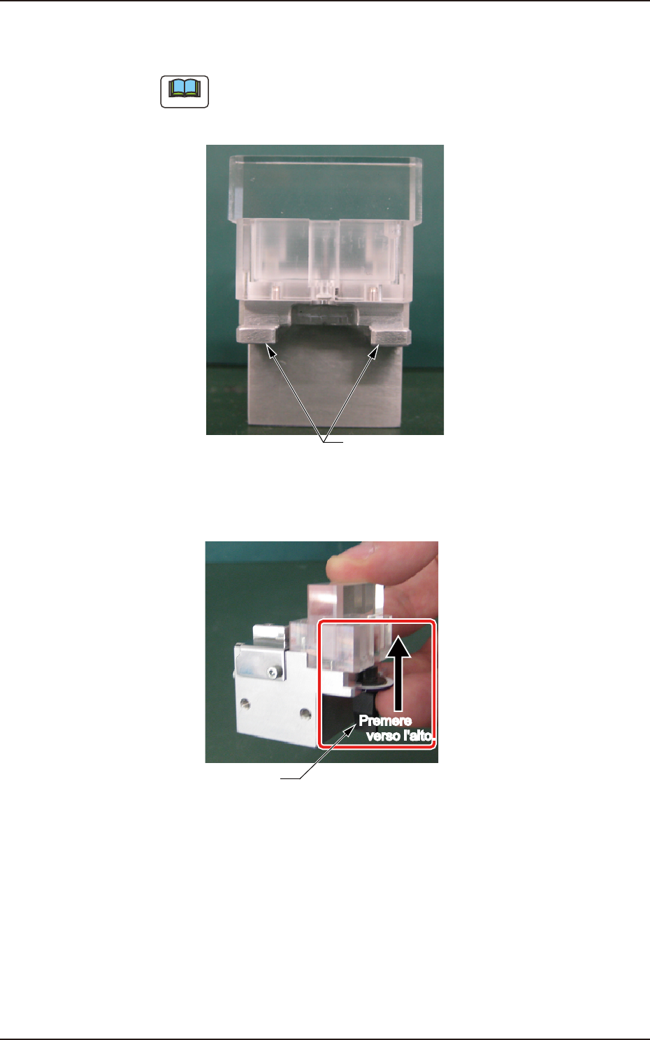 4OM-1482 1-69 1304-001 (5) Spingere la sezione di scorrimento verso l’estremità del blocco acrilico e inserire il ltro dell'ugello. Estremità del blocco acrilico Sezione scorrevole Spingere F4A64 5.7 Procedura di i…