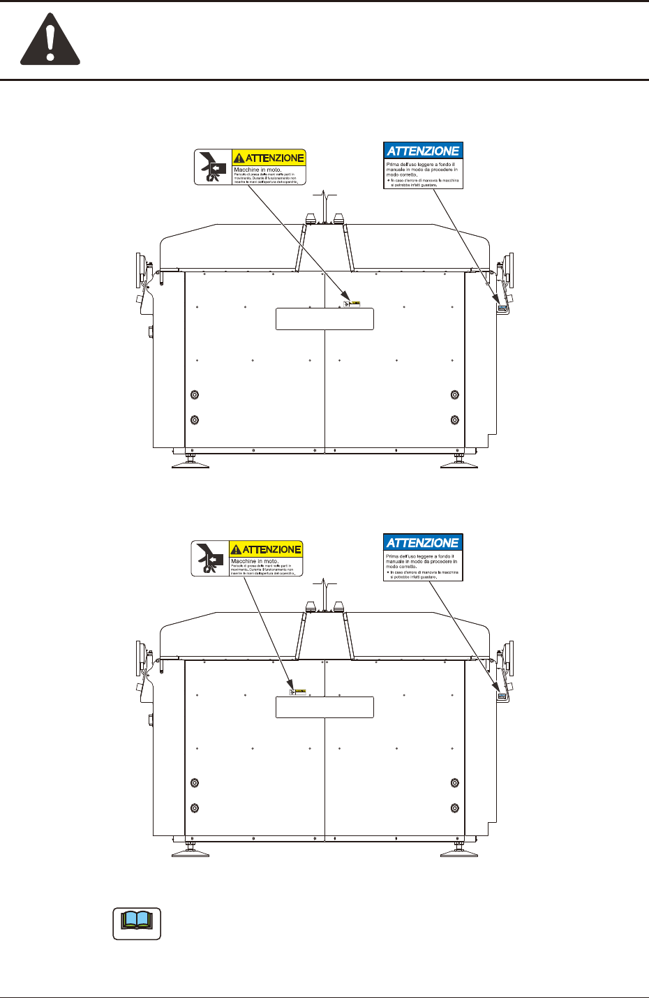 Precauzioni di sicurezza Sicurezza-19 1OM-1842 1305-002 5. Etichette di avviso 3 4 4 4 4 3 4 4 4 4 Lato anteriore della macchina Lato anteriore della macchina (9) (9) (16) (4) (6) (18) Do not put any object on this secti…