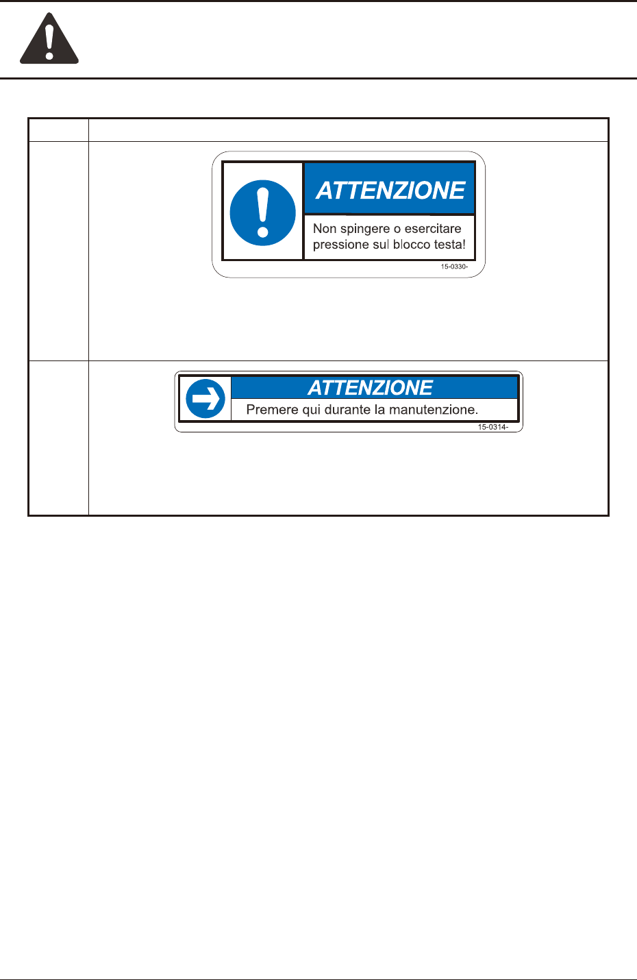 Numero Etichette di avviso e loro descrizione