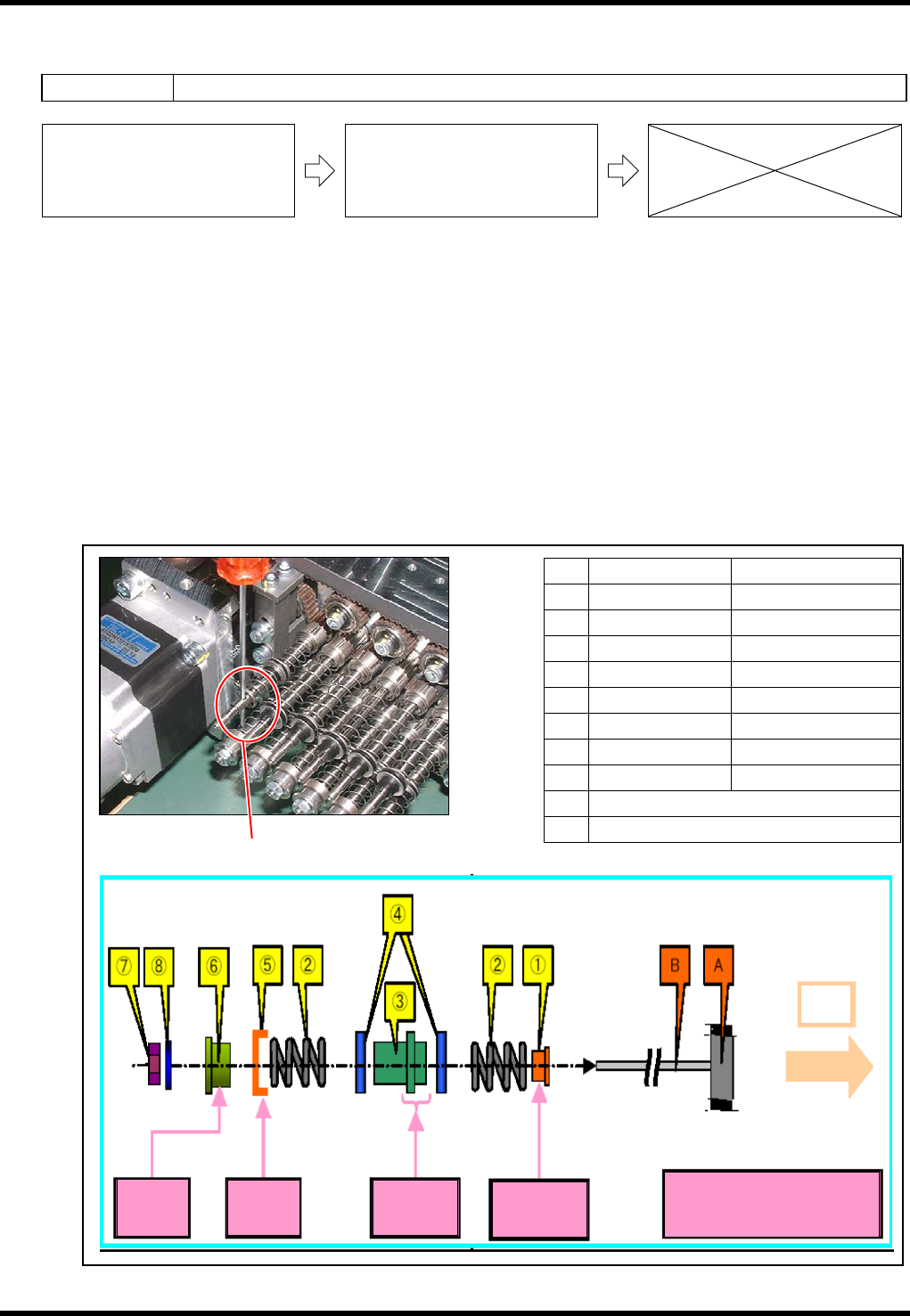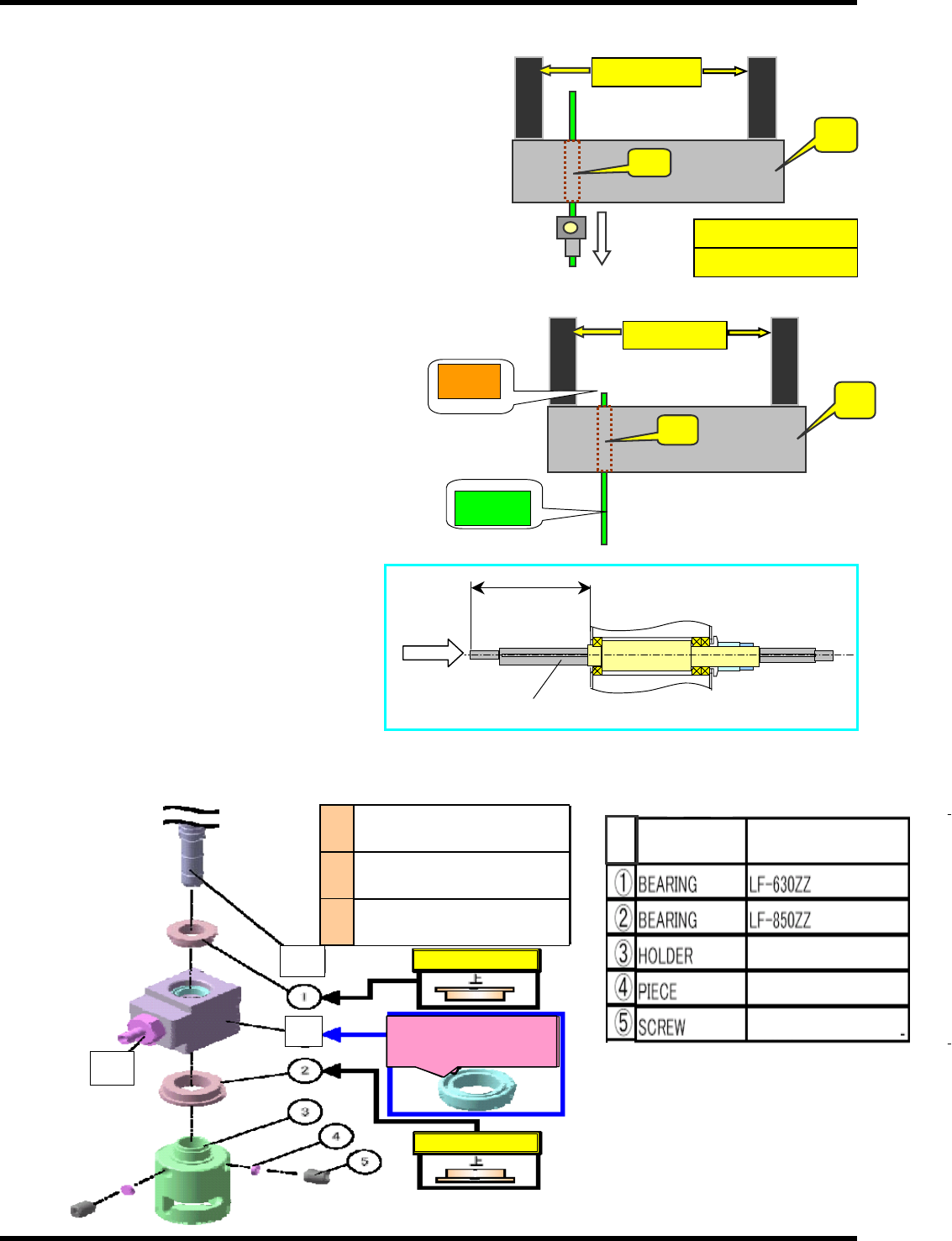 NPM 服务手册 4.5 12 吸嘴头 EN1SCC-83-050-B0 4.5-5 3. 从轴承盒里拔出滚珠花键。 换上新的滚珠花键。 = 注意 = 禁止在滚珠花键部涂敷润滑脂 关于滚珠花键的轴部分的润滑脂,被 自动供给, 因此不需要涂敷润滑脂。 因此,禁止擦拭润滑脂。 = 注意 = 插入轴 请确保将轴承盒 (B) 和滚珠花键轴 (A) 的编号的方向一致,将轴插入。 4. 确认滚珠花键的往返移动抵 抗值。 在水平的状态下确认滚珠花键的…