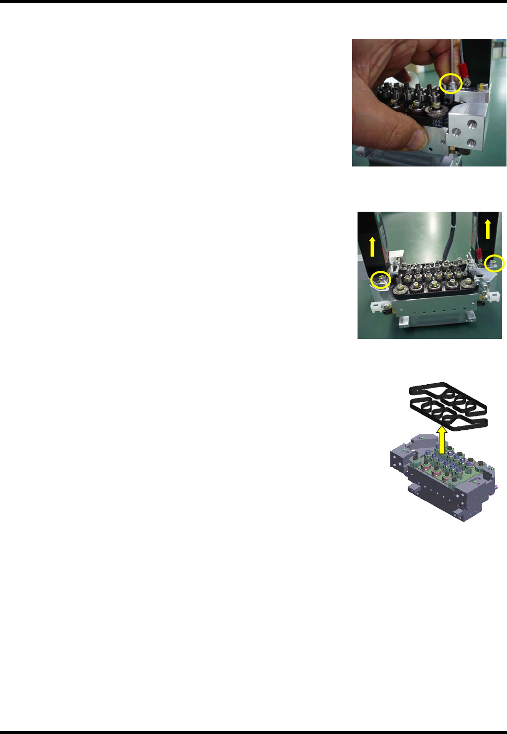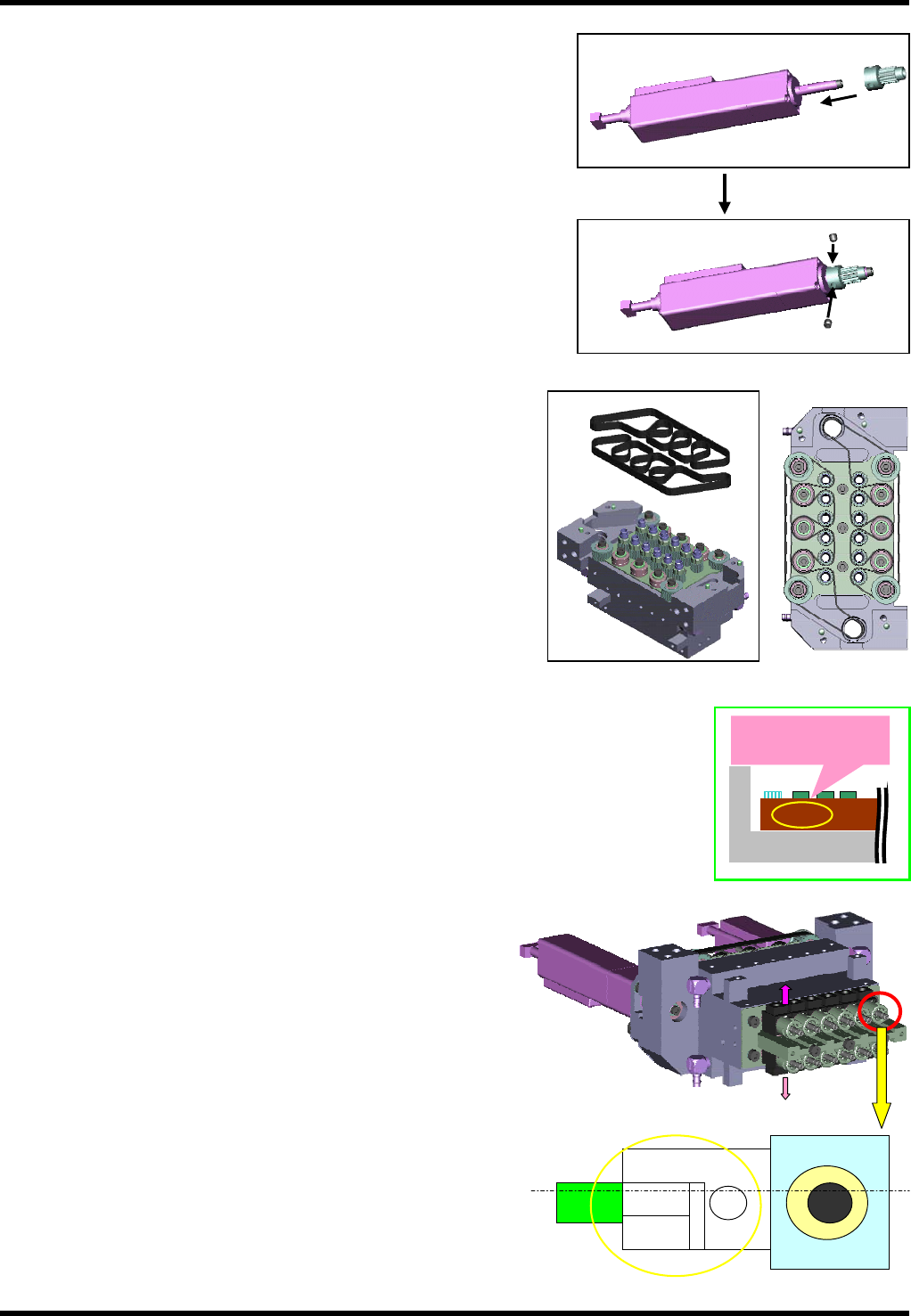 NPM 服务手册 4.5 12 吸嘴头 EN1SCC-83-050-B0 4.5-1 1 6. 交换 θ 电机 / 皮带。 安装 θ 电机的滑 轮。 安装皮带。 安装 θ 电机。 绷紧暂时张力。 = 注意 = 应将支架的 L 侧向外侧 ,绷紧皮带。 A BC ※请注意不要将文字 颠倒 = 注意 =