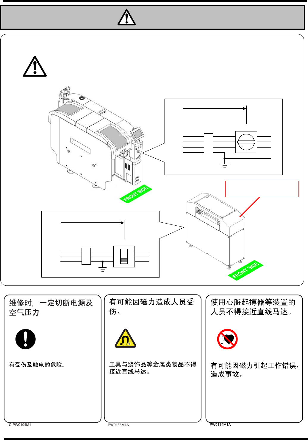 安装心脏起搏器的人员,请勿在安全盖内进行作业。