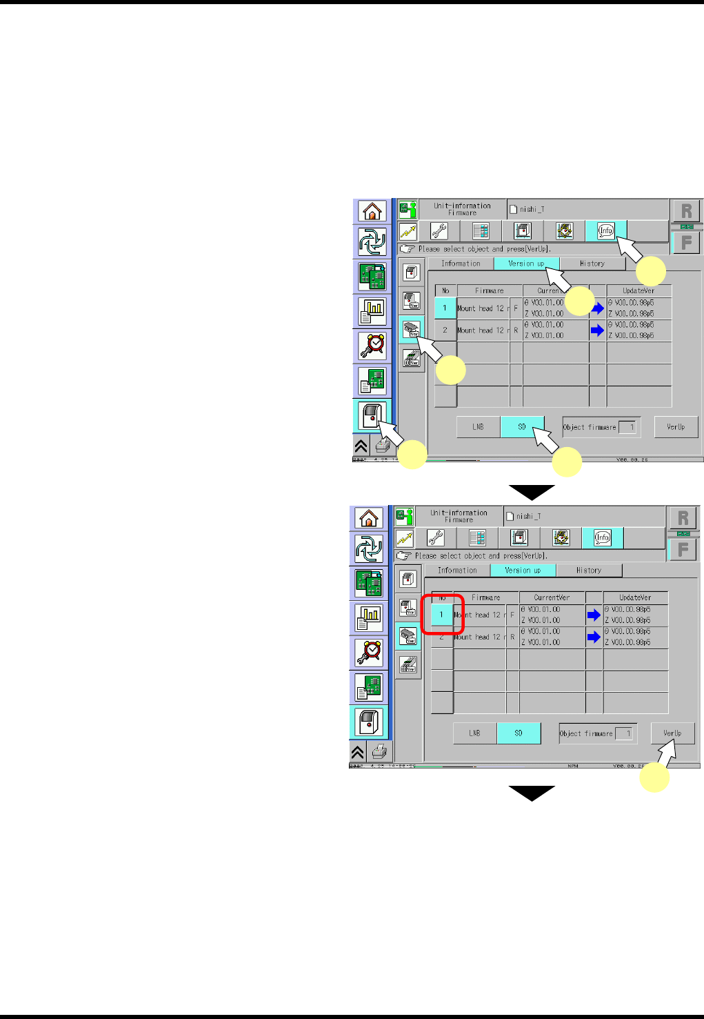 2. 选择版本升级对象后,按下[VerUp] 。