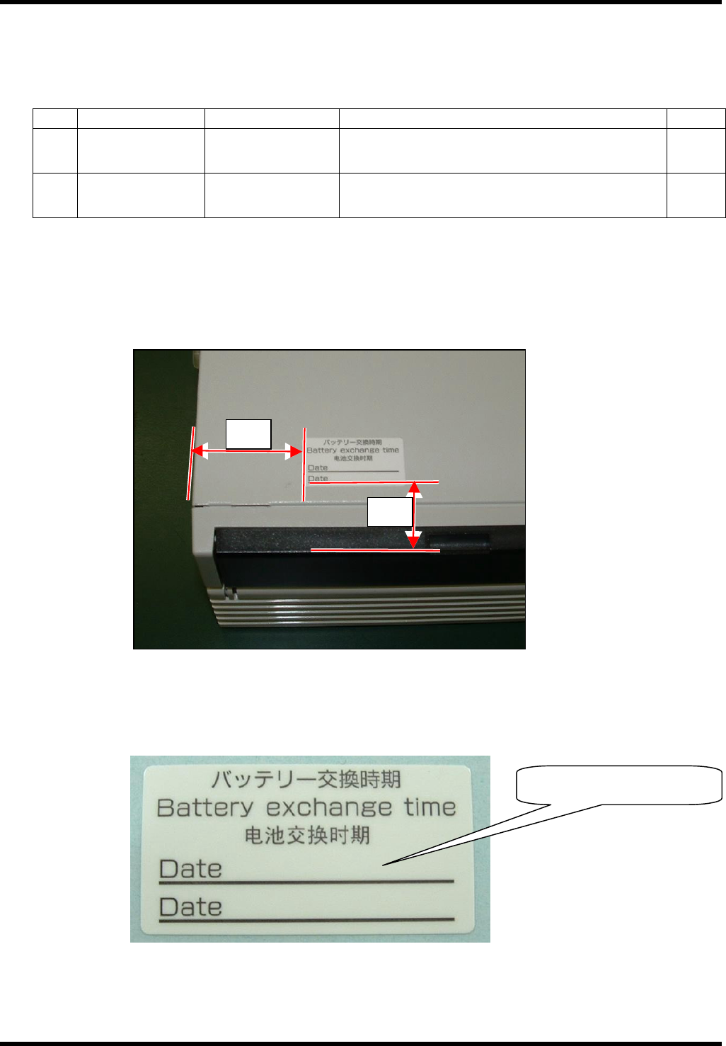 请将随机的电池交换时期的标签贴附在下面的位置。