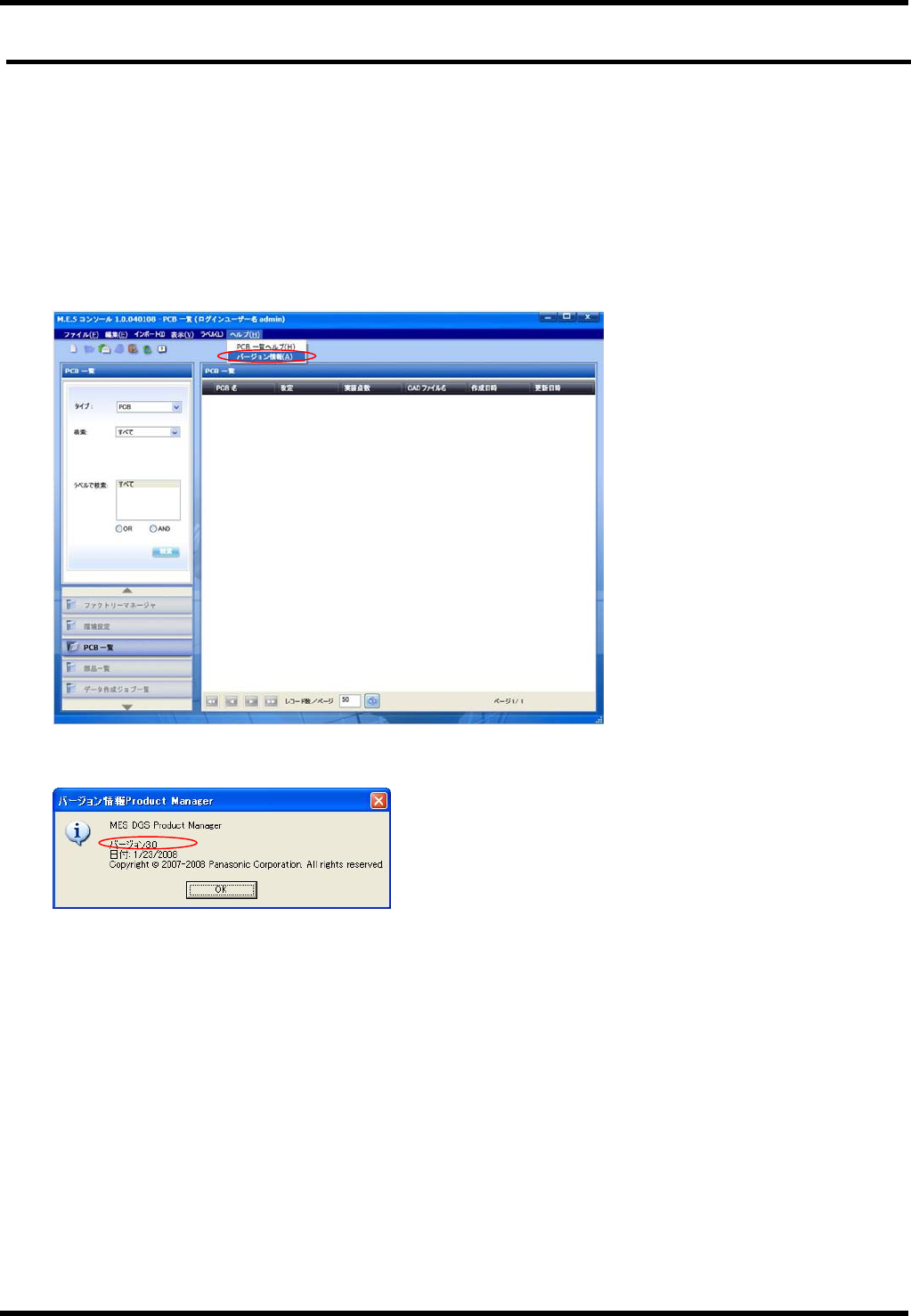 NPM 服务手册 8.1 确认版本 EN1SCC-92-010-C0 8.1-1 8.1. 确认版本 EN1SCC-92-010-C0 8.1.1 确认版本 为了调查软件的功能或者确认不良内 容,有确认客户的软件版本的这 样的情况。本节中对版本的确认方法 进 行说明。 DGS 的版本确认方法 在 DGS 画面的工具栏上, 单击「帮助」→「版本信息」。 将会显示版本信息。