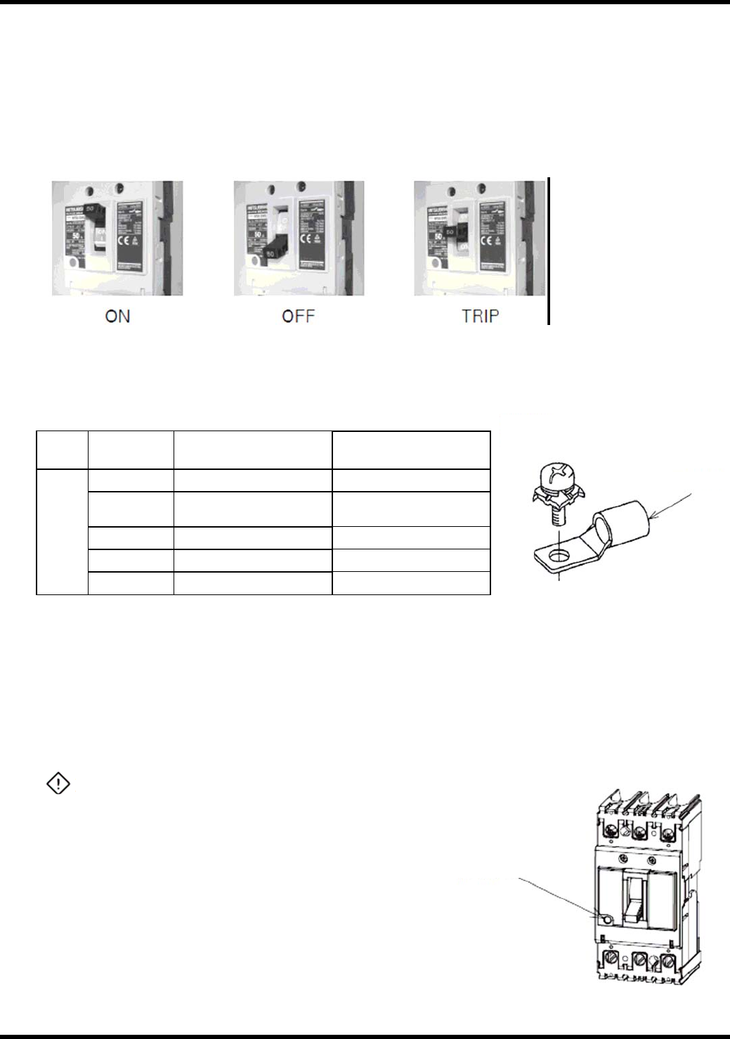 NPM 服务手册 9.3 控制零件 ( 从市面销售零件使 用说明书中摘录 ) EN1SCC-83-R30-B0 9.3-13 M5 螺丝 夹紧扭矩 : 22 lb-in (2.5 N-m) 加压端子 跳闸按钮 (PTT) DANGER 9.3.2 无保险丝断路器 三菱电机株式会社 把手操作 1. 1. 跳闸位置 : 如果断路器自动跳开 ( 跳闸 ) ,把手就停在 ON 和 OFF 的中间位置,进行跳闸显 示。 此时,把手上的白线看不…