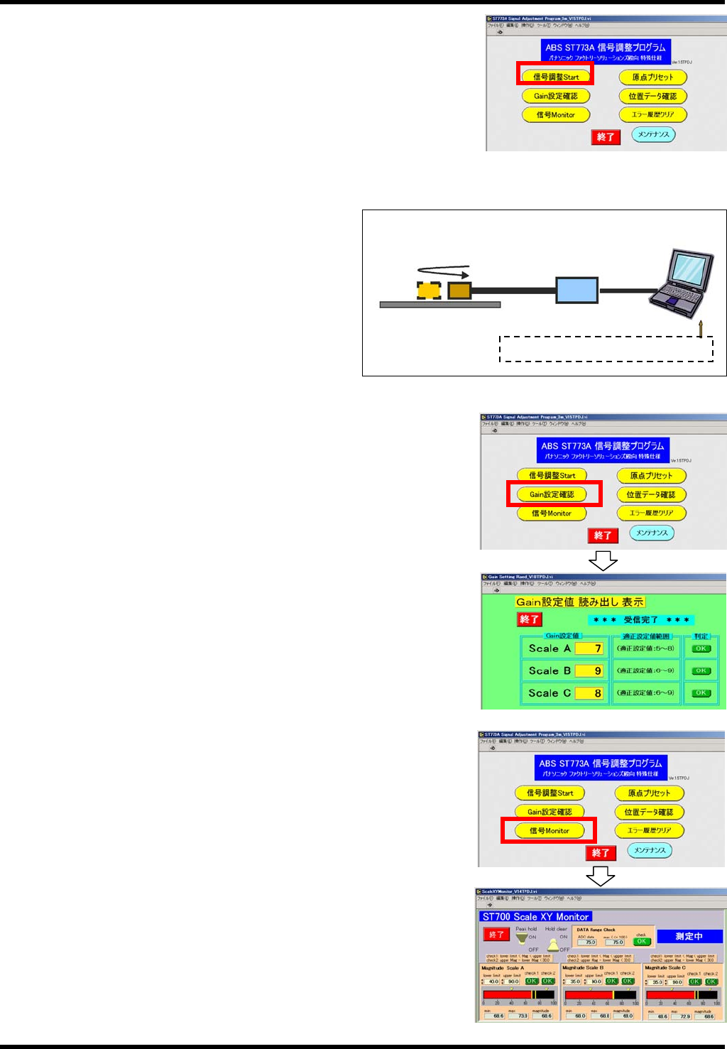 5. 执行 ST700 调整程序的 <信号调整 Start> ,确认是否为 OK。
