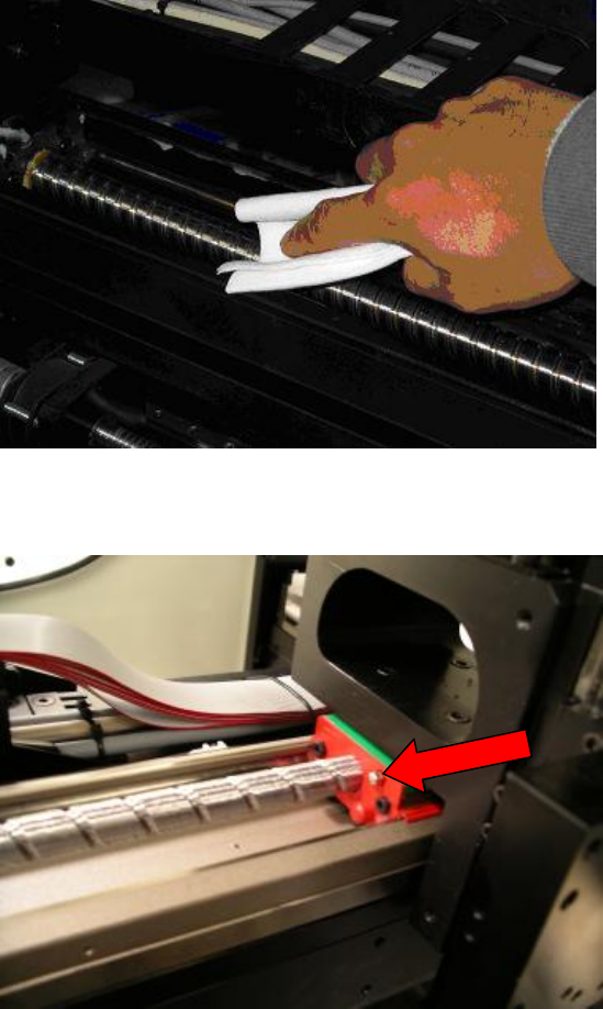 步驟3. 用乾淨擦拭布將滾珠螺桿及滑軌內舊油擦拭乾淨