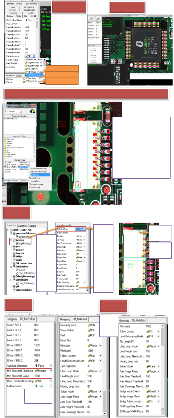 Polarity 算法:检测反 向 高度差(未截图进 暗圆 亮圆 OCV 算法 与 B-type 一致 3.4 、 U-type 算法 第一步:使用 Universal 创建新料号。 第二步:分配算法 第三步:进入编辑界面 Location 1 、定位 2 、焊点 3 、极性 4 、条码 5 、短路 6 、 ------ 7 、 ------ 8 、 3D 盒子对 比 9 、 3D 高度覆 盖 10 、翘脚和焊 点 1 、定位条数 量 …
