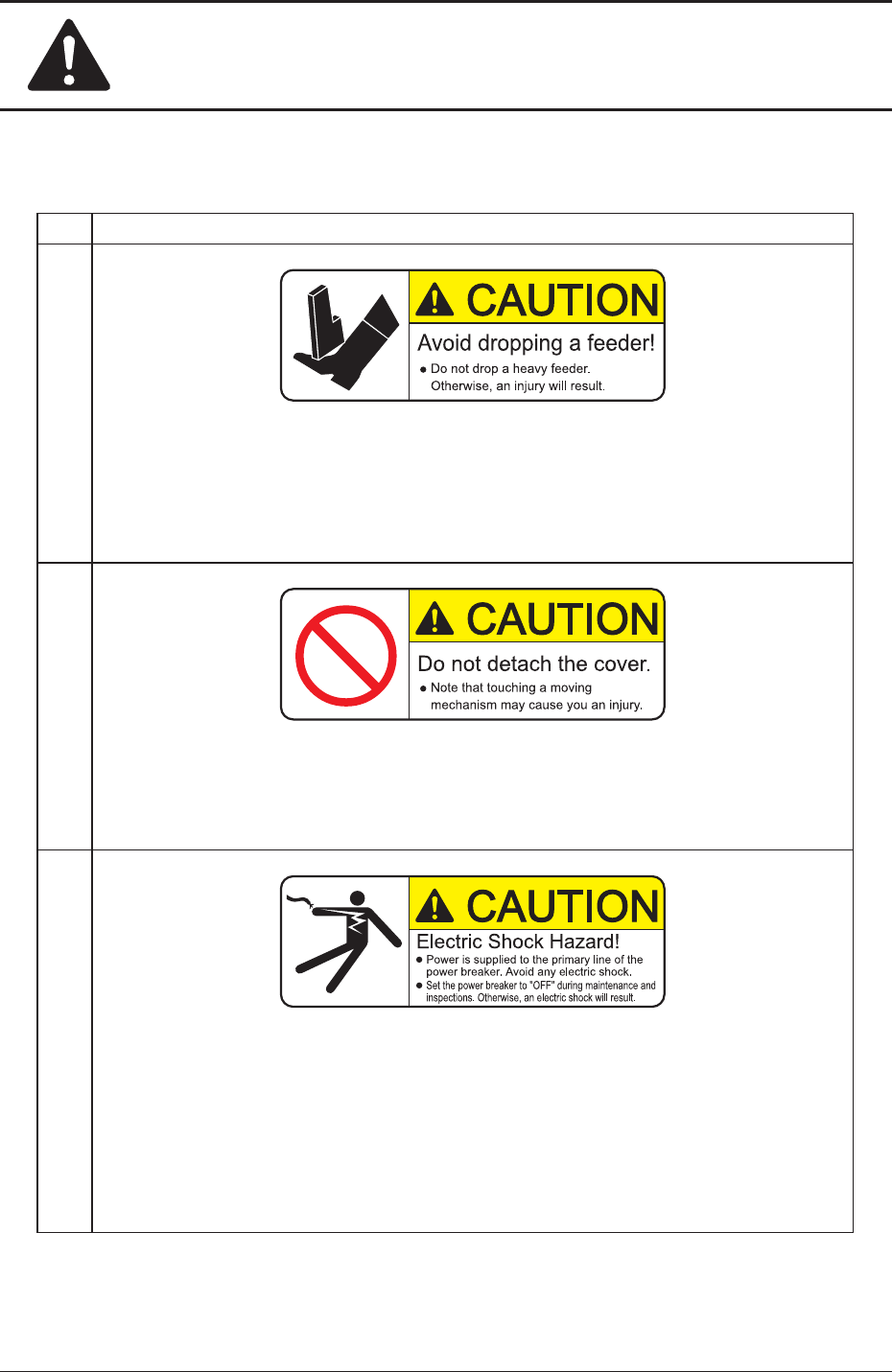 Safety Precautions Safe-26 AKFE-ID No. Alert Labels and Description (8) Description l Whena cover(doortype)isopenedorclosed,besuretoholdthegriprmlyand slowlymovethecoverupordown.Otherwise,your…
