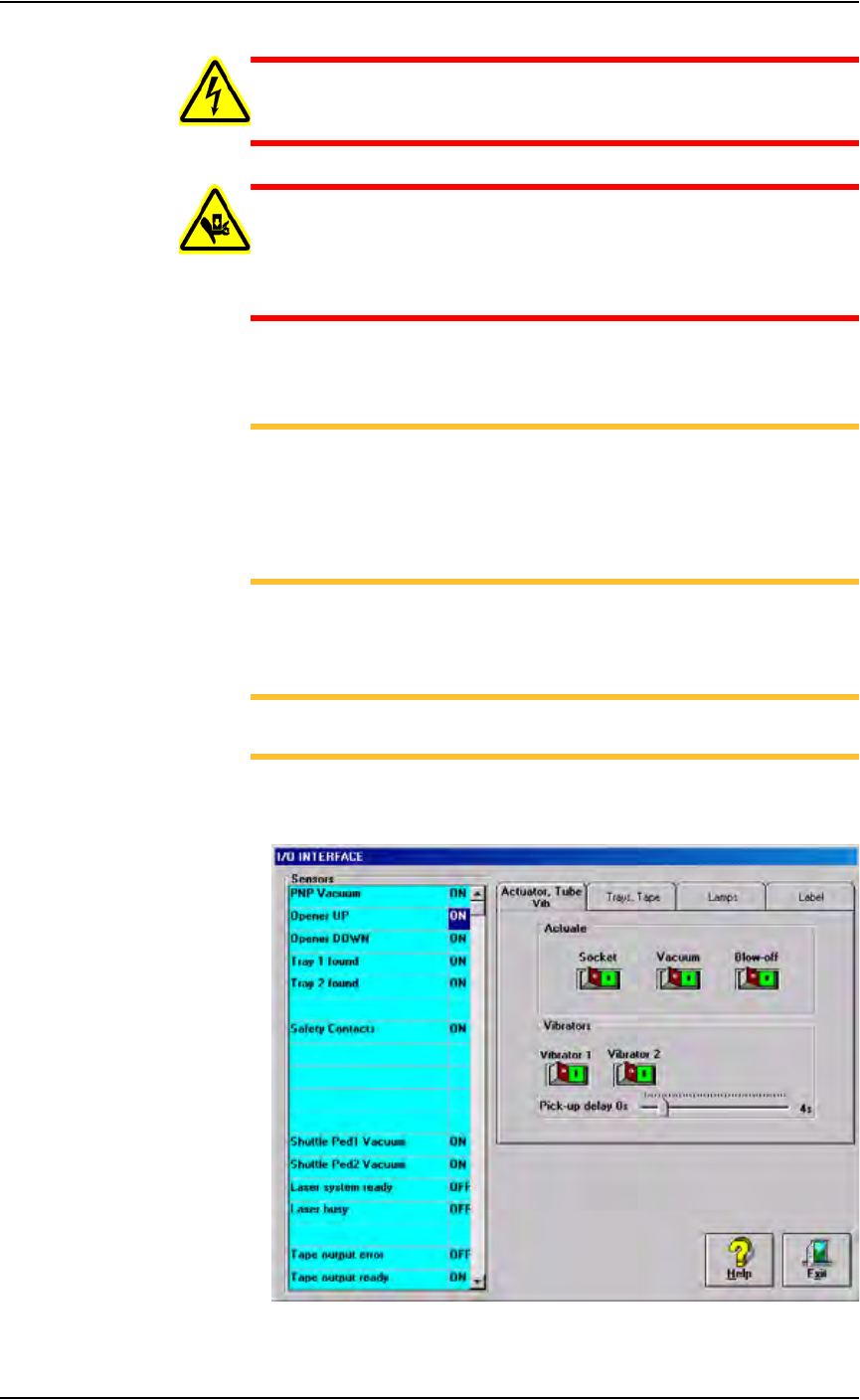 Vacuum sensors on the PS288 are adjustable. The I/O Interface window