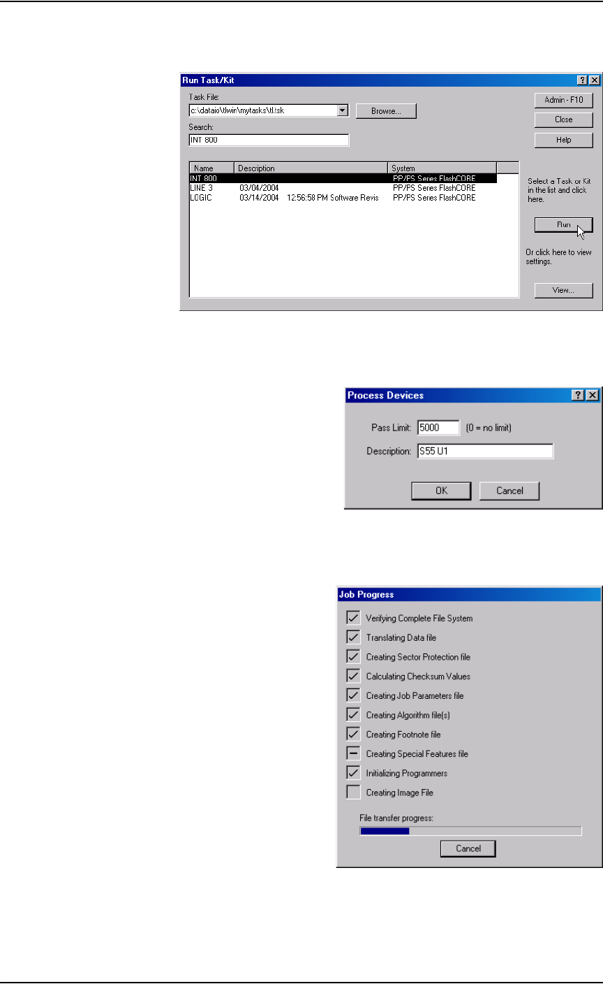 2. From the TaskLink Run Task/Kit window, select the Task from the list