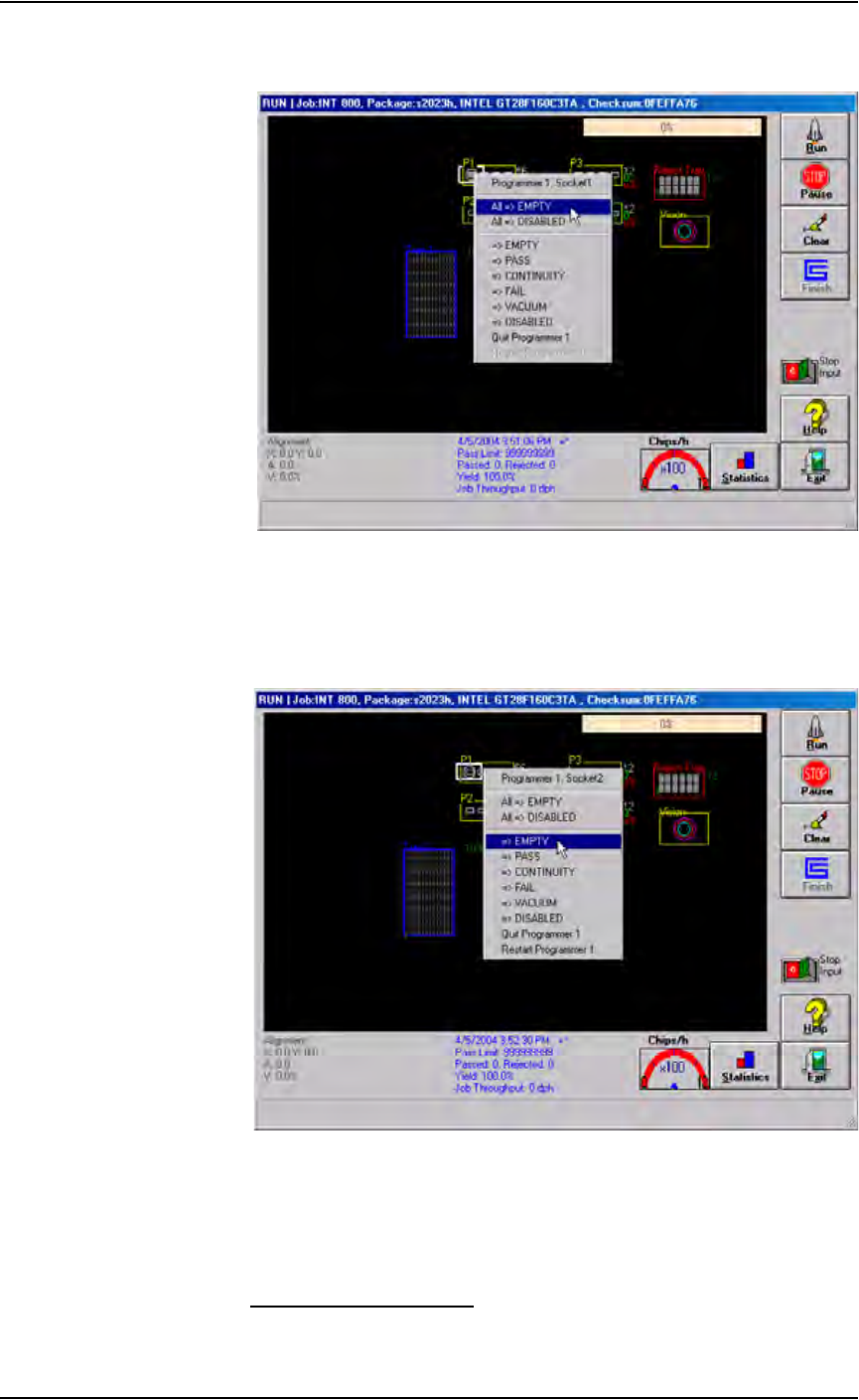 Run window. All devices will be removed from the programming sockets