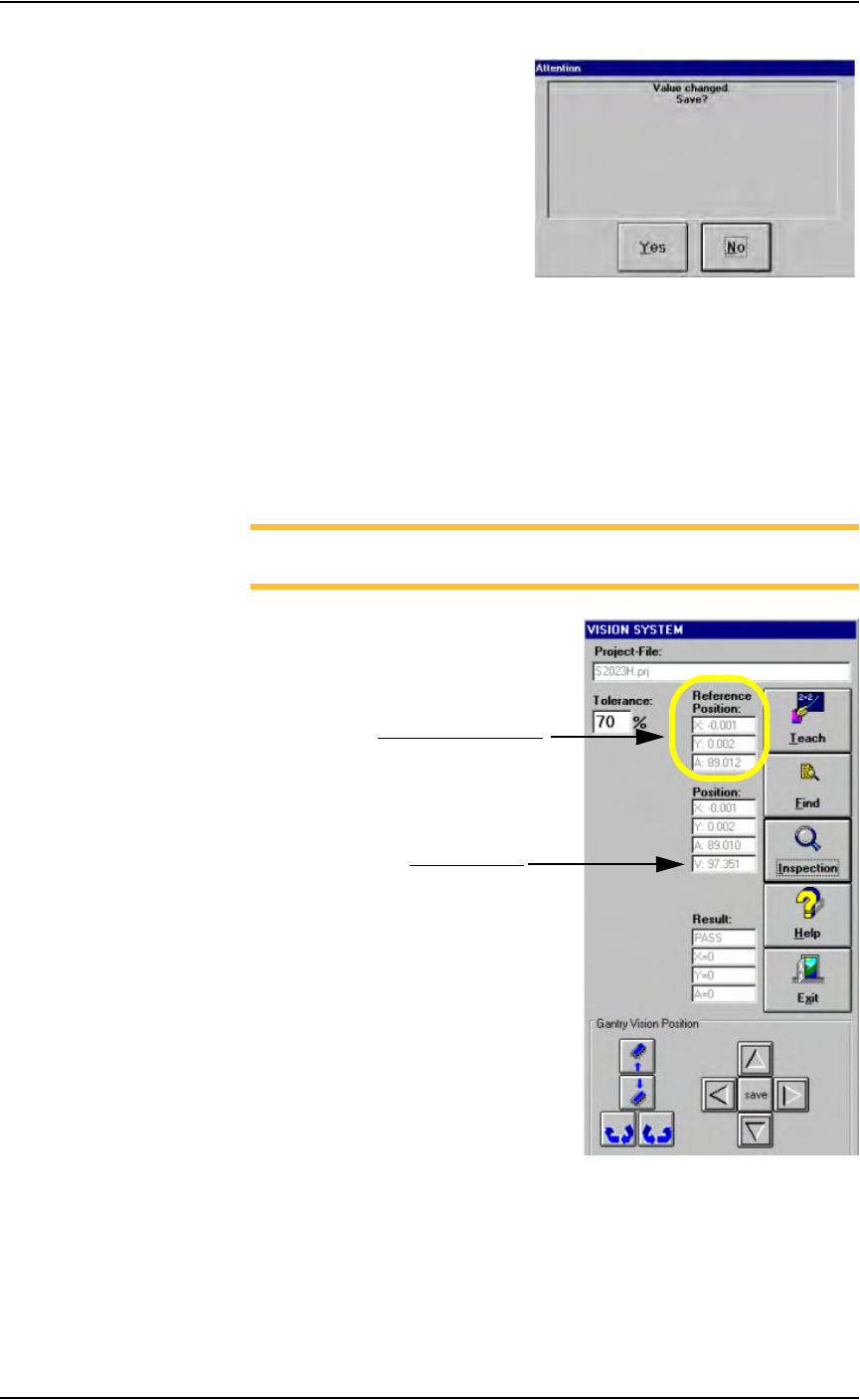 9a) On the Vision System window, note the new Reference Position val-