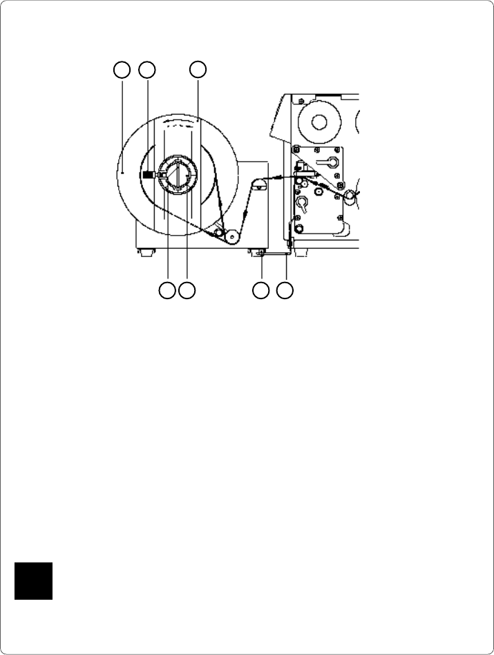 priately to the rewinder axle (6) by sliding the clamp (7) over the label strip