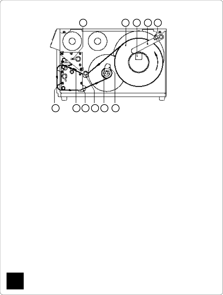 and then over the rewind guide plate (3) to the internal rewinder (10).