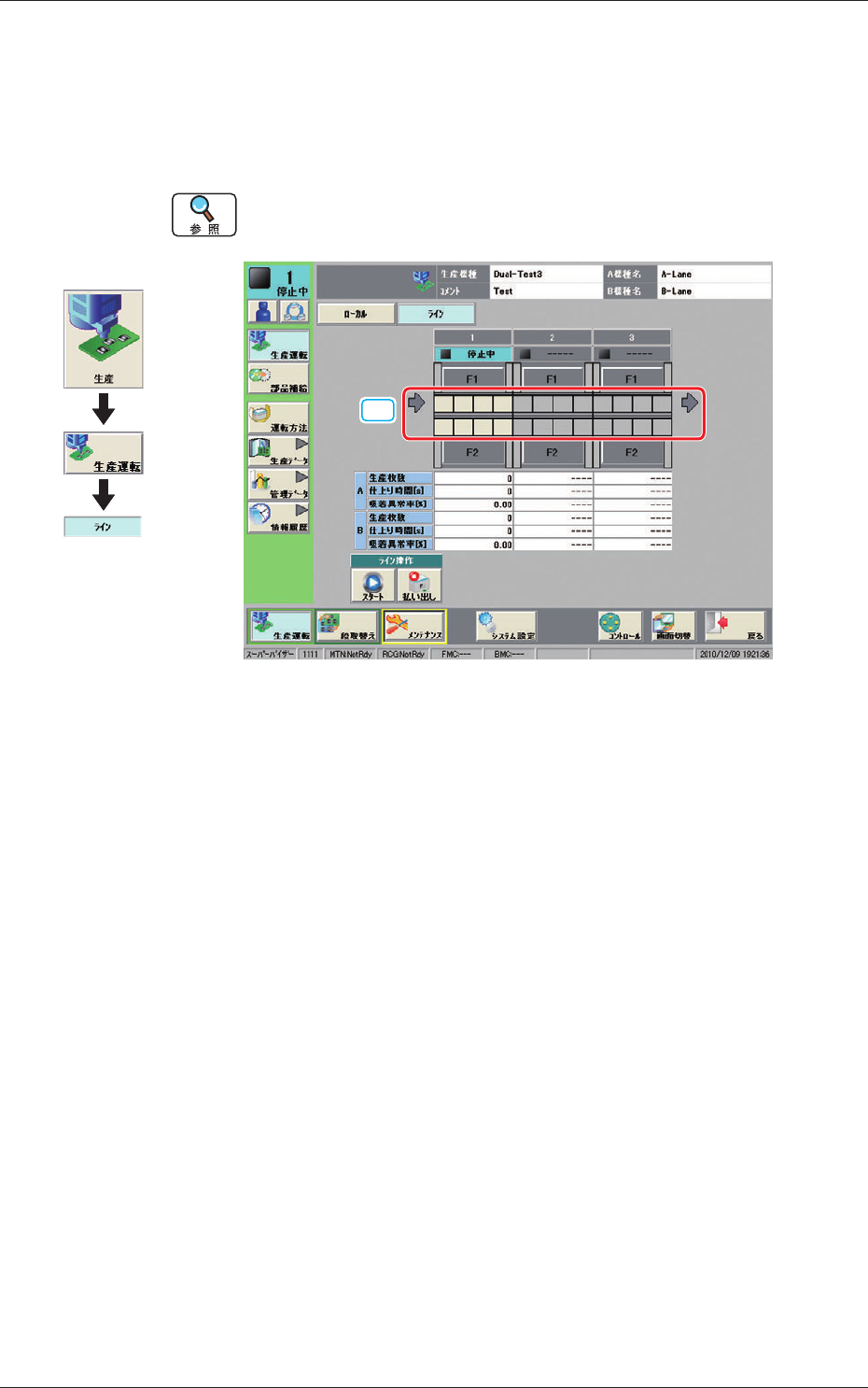 生産ラインの運転状態の確認、およびライン操作を行います。