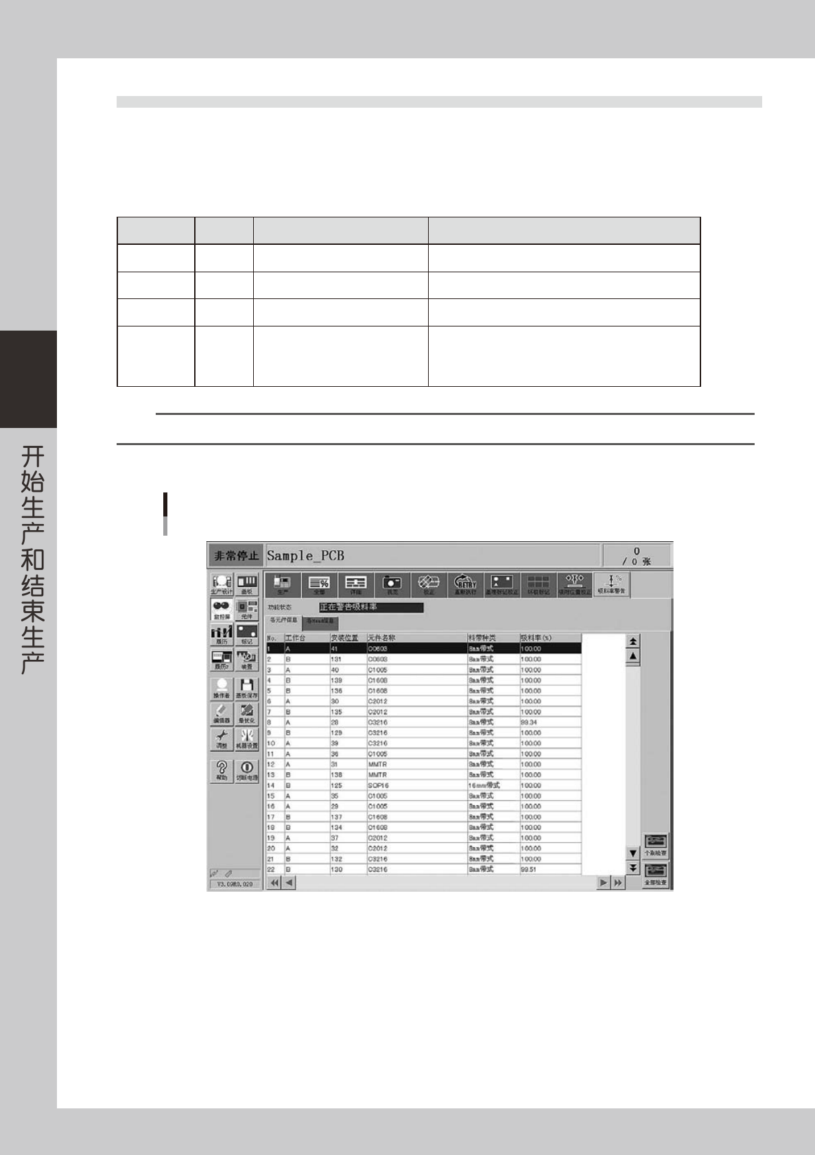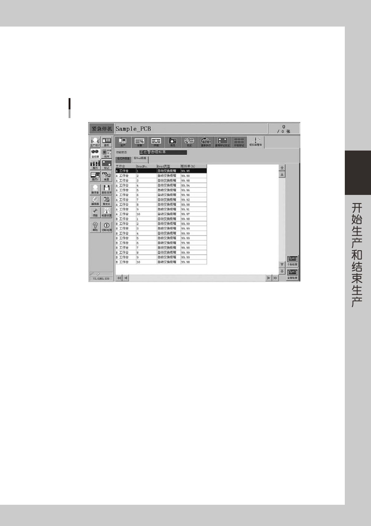 吸料率在贴装组的贴装完成后,立即更新。但是如果没有使用该元件或该贴装头,该行不会显示。运行中的吸料