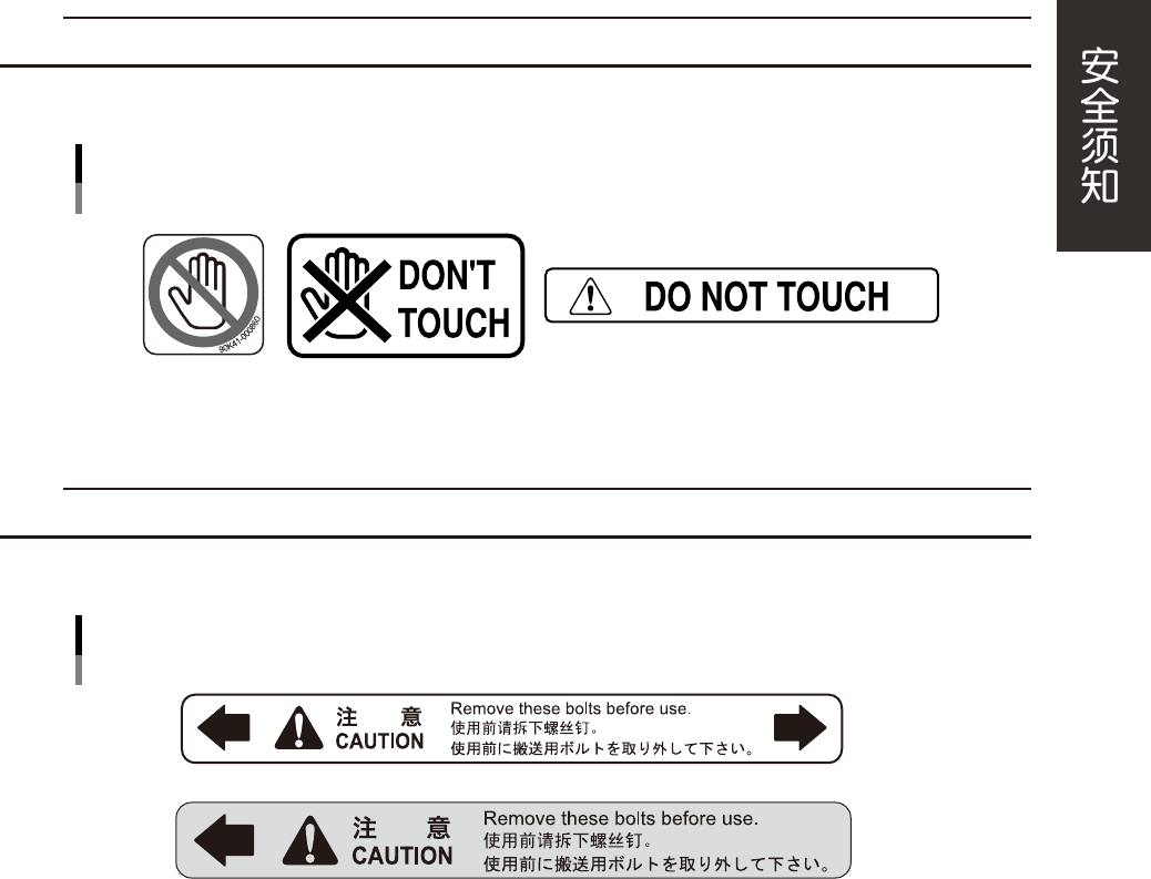 使用前务必拆下搬运用的螺丝钉。如果不拆下便使用可能使机器受损。