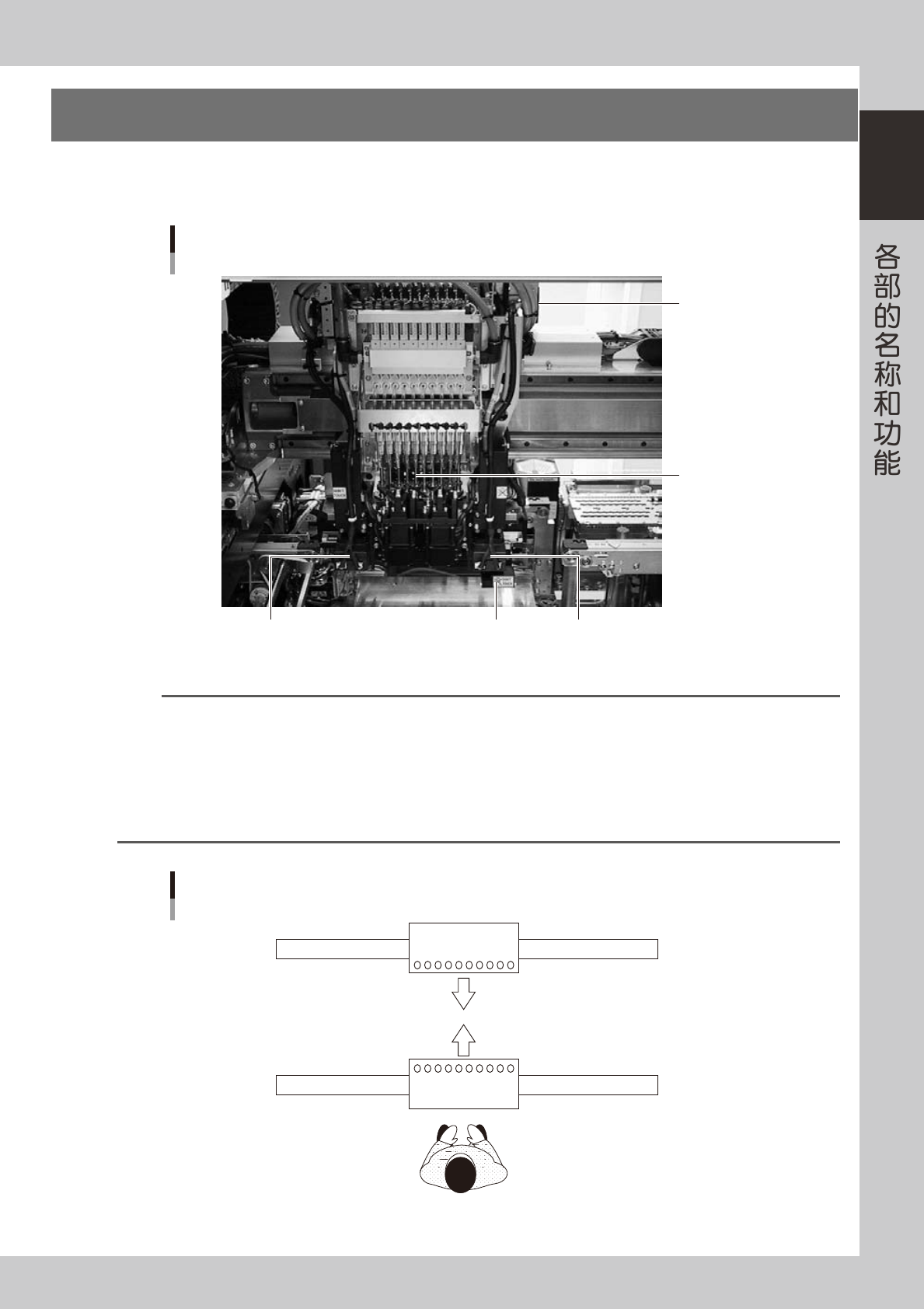 1-5 1 3. 贴装头部 贴装头部分别安装在贴片机 A 的 XY 轴和 B 的 XY 轴上,进行元件的吸附和贴装。以下具体介绍贴装头部的构成和 吸嘴的种类。 贴装头部 基准标记识别相机 照明装置 扫描相机 基准标记识别相机 照明装置 10连多功能贴装头 移动贴装头用 的把手(后侧) 25115-L2-00 n 要点 根据机器规格不同,基准标记识别相机照明装置的安装位置不相同。 ‧ 右→左传送的机器 : 基准标记识别相机为双相机规…