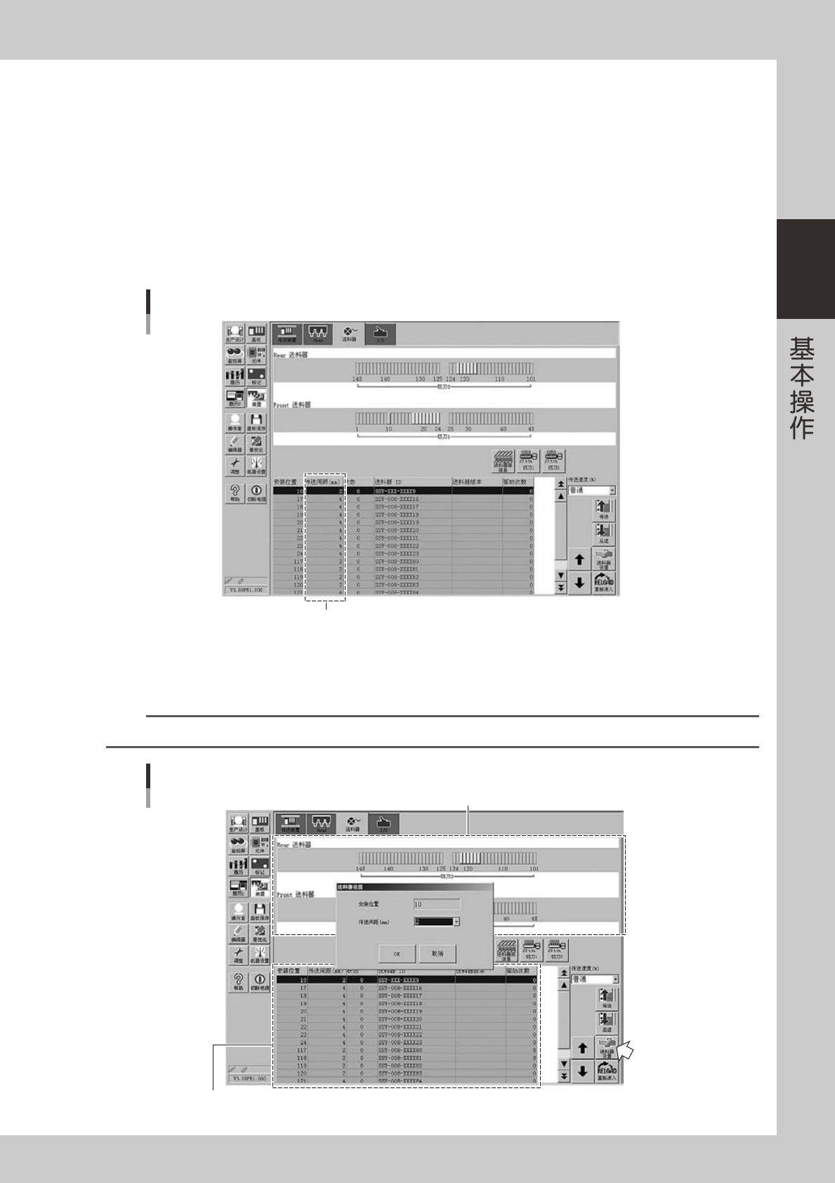 下述内容,是将「机器设置」-「选项设置」画面中的「指定送料器间距」设置为「送料器设置」时的说明。