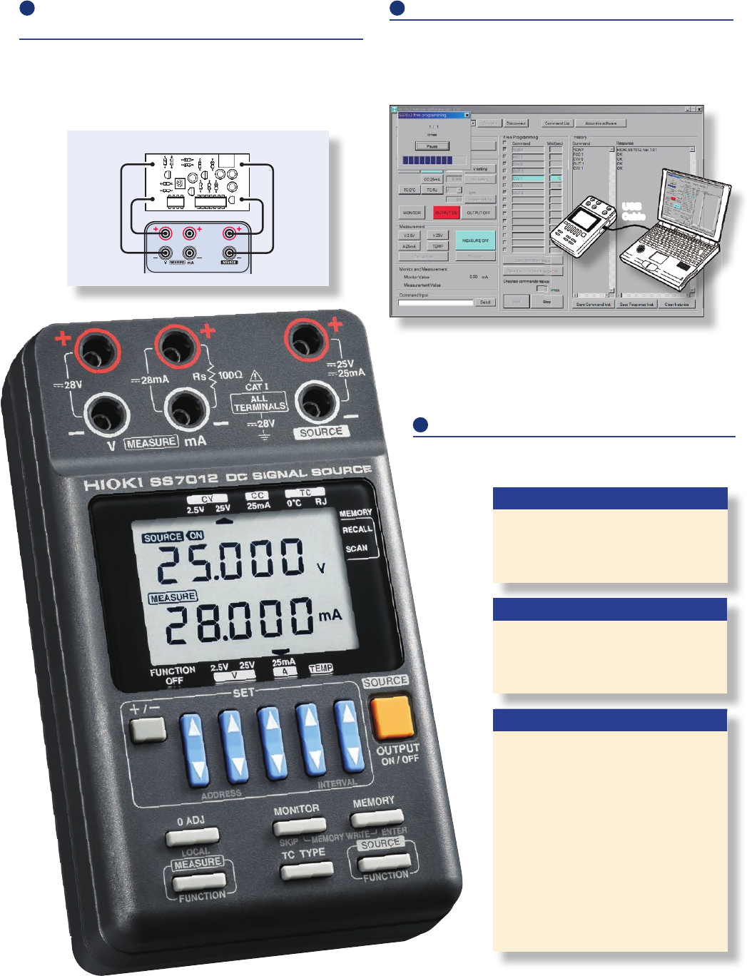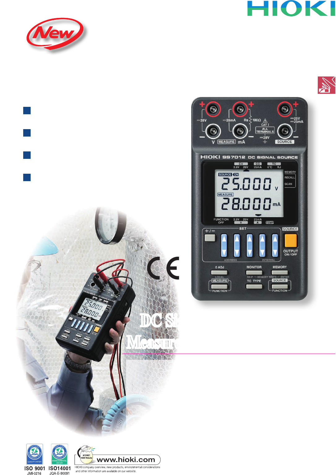 DC SI GNAL S OUR CE Signal Source & Calibrator SS 7 0 12 DC S ig n al S o ur ce S u p p l ies a n d M eas ur es Si gn als S i m ulta n eo u s ly The HIOK I DC SIGNA L SOURCE SS701 2 c a n b e u s e d n o t o n l y f …