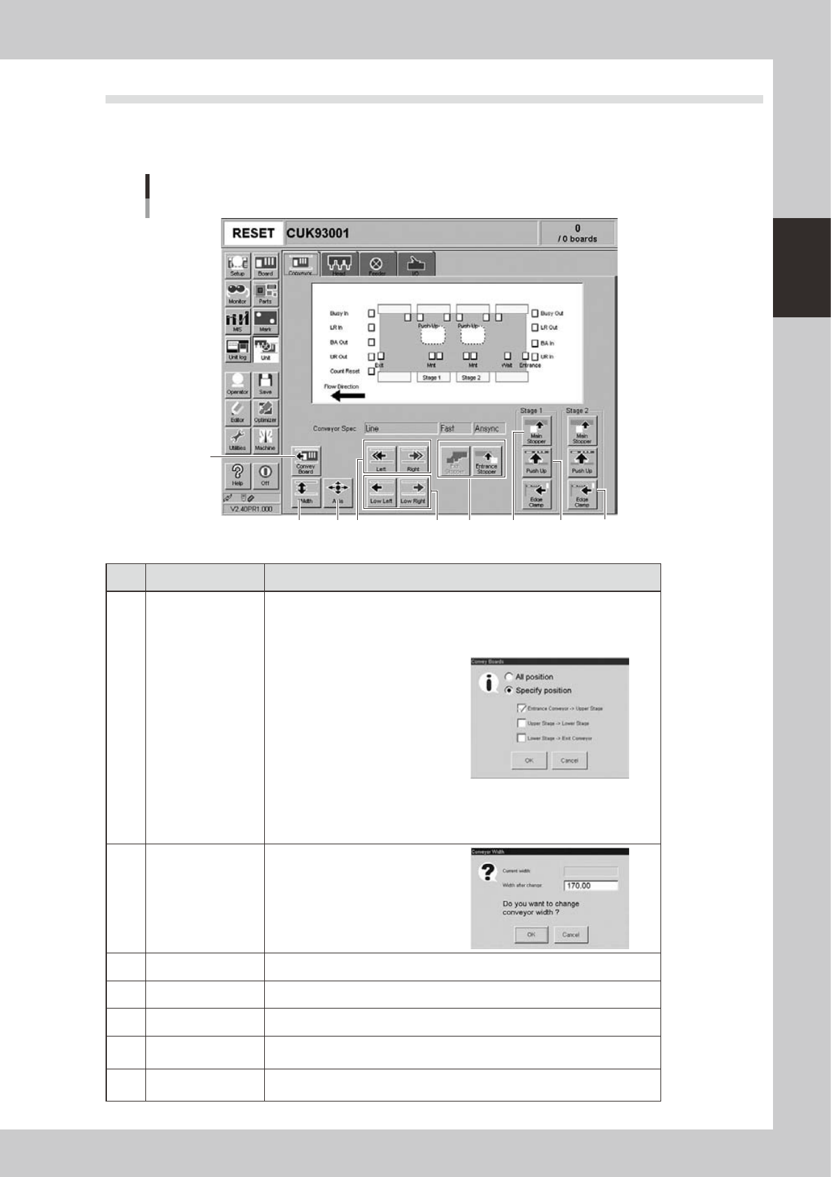 2-11 2 Basic operation 2 . 3 U n i t s c r e e n T h i s s e c t i o n d e s c r i b e s t h e m a n u a l o p e r a t i o n b u t t o n s o n t h e U n i t s c r e e n . n M a n u a l c o n v e y o r o p e r a t i o n 3…