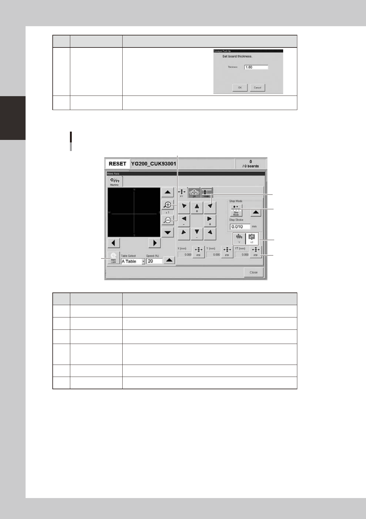 5 Arrow Use these buttons to move the selected axis in the desired direction.