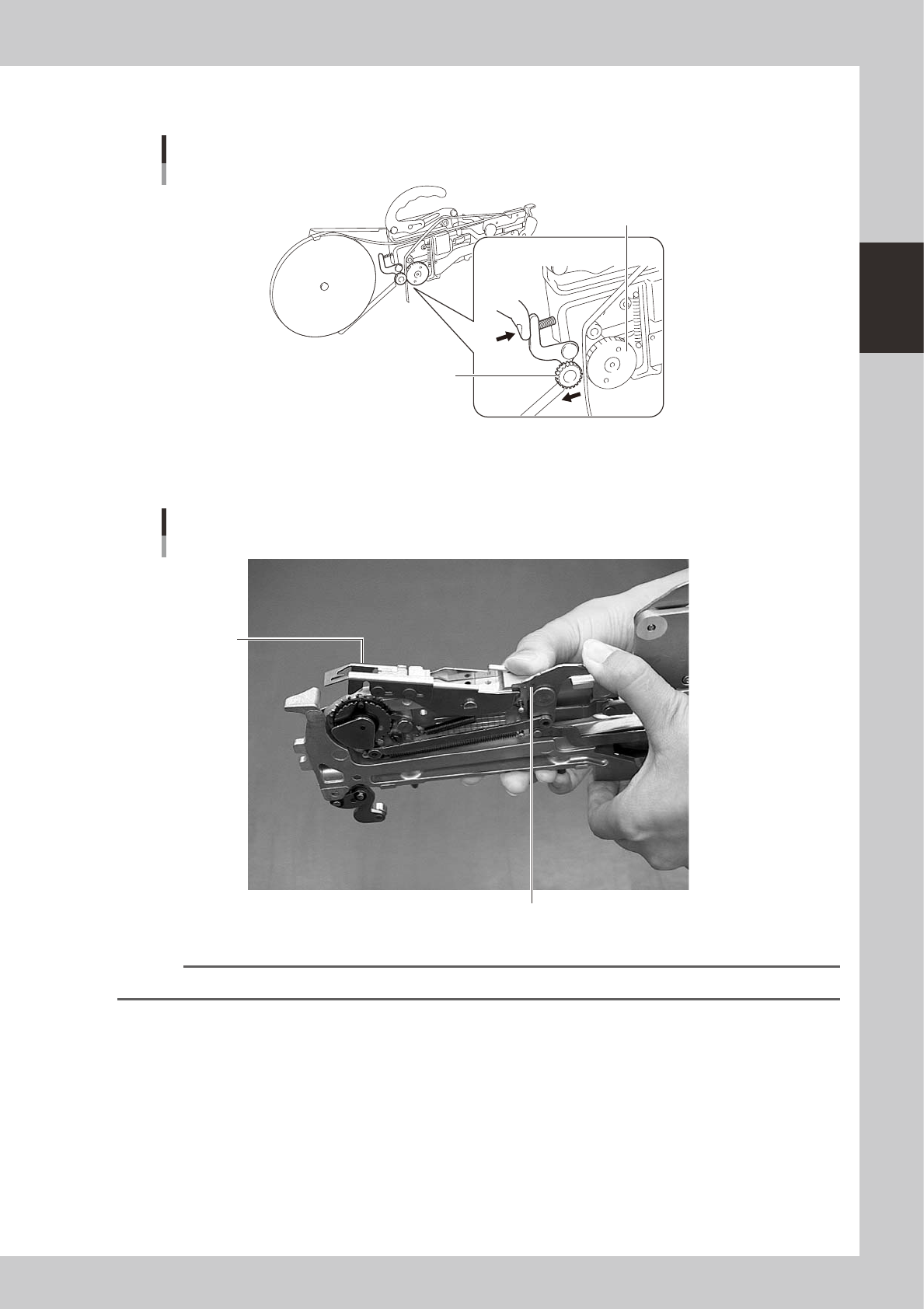 2-27 2 Basic operation P r e s s t h e i d l e r o l l e r a s s e m b l y l e v e r a n d i n s e r t t h e t o p t a p e b e t w e e n t h e d r i v e r o l l e r a s s e m b l y a n d t h e i d l e r o l l e r a s s e…