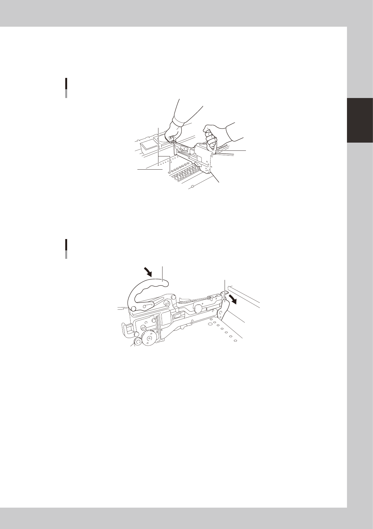 Set the carrier tape so that the tape feed gears fit into the feed holes in the carrier tape.