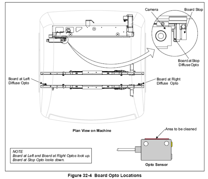 Board Opto-sensors(Board at Left, Board at Stop, Board at right)看 PCB 板的感