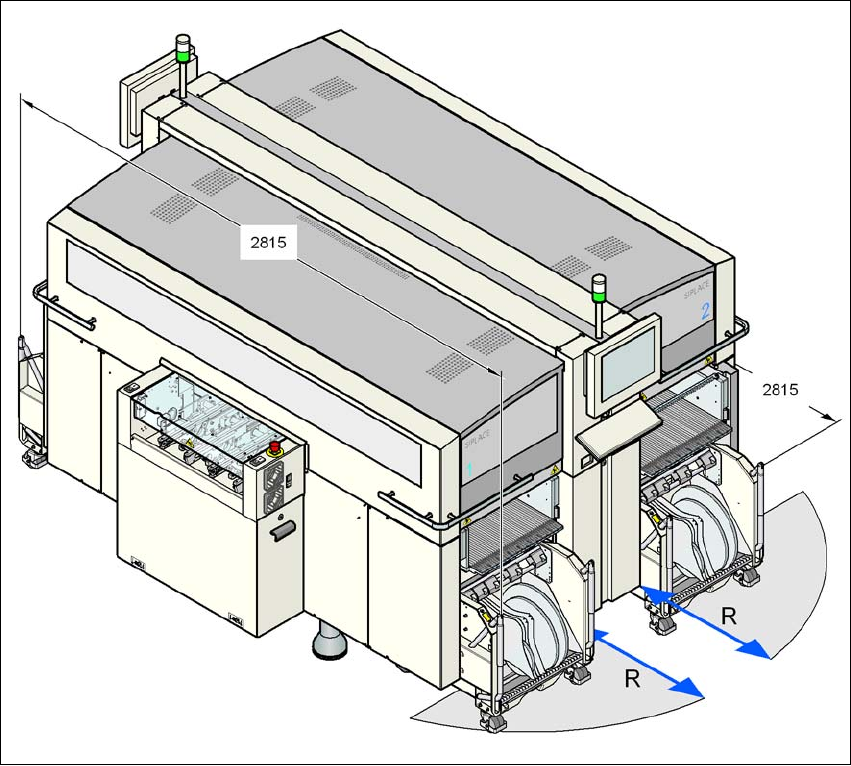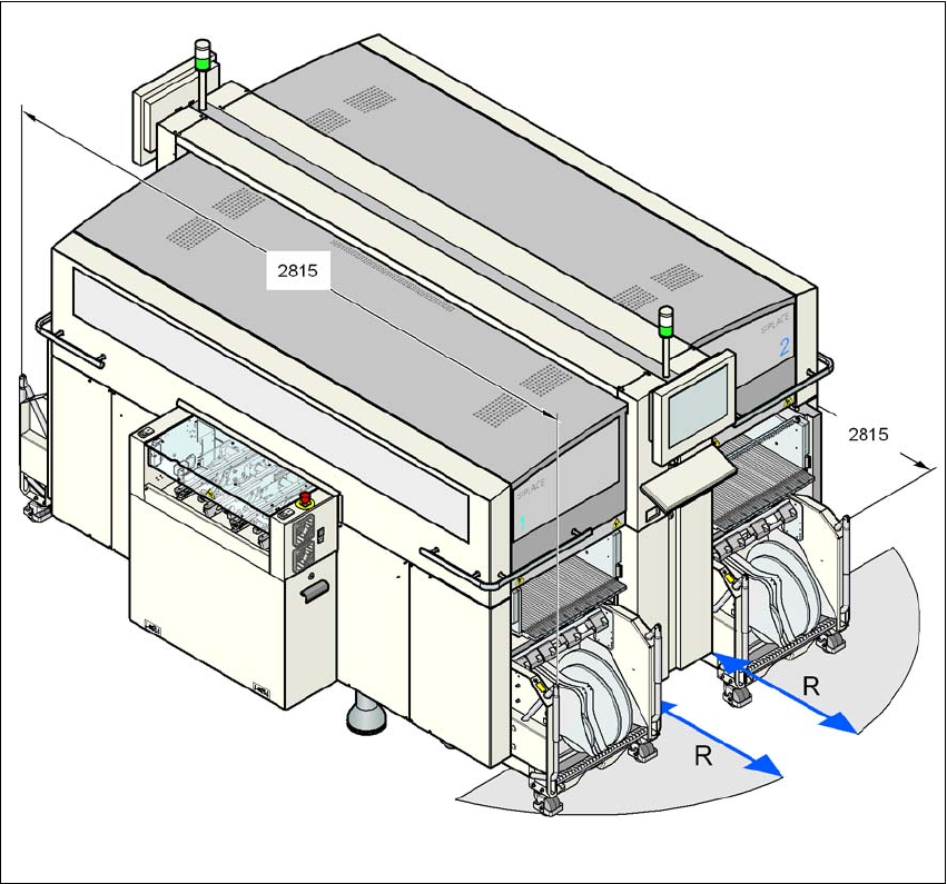 사용자 매뉴얼 SIPLACE X 시리즈 3 장비 기술 데이타 소프트웨어 버전 SR.70x.xx 에서 2 011 년 1 월 한국 판 3.3 크기 및 무게 115 3.3.4 컴포넌트 트롤리 조종 거리 3.3.4.1 X4I 실장기의 컴포넌트 트롤 리 조종 거리 3 3 그림 3.3 - 6 X4I 실장기의 컴포넌트 트롤리 조종 거리 X4 실장기의 컴포넌트 트롤리 조종거리 R 은 다음과 같습니다 : -…