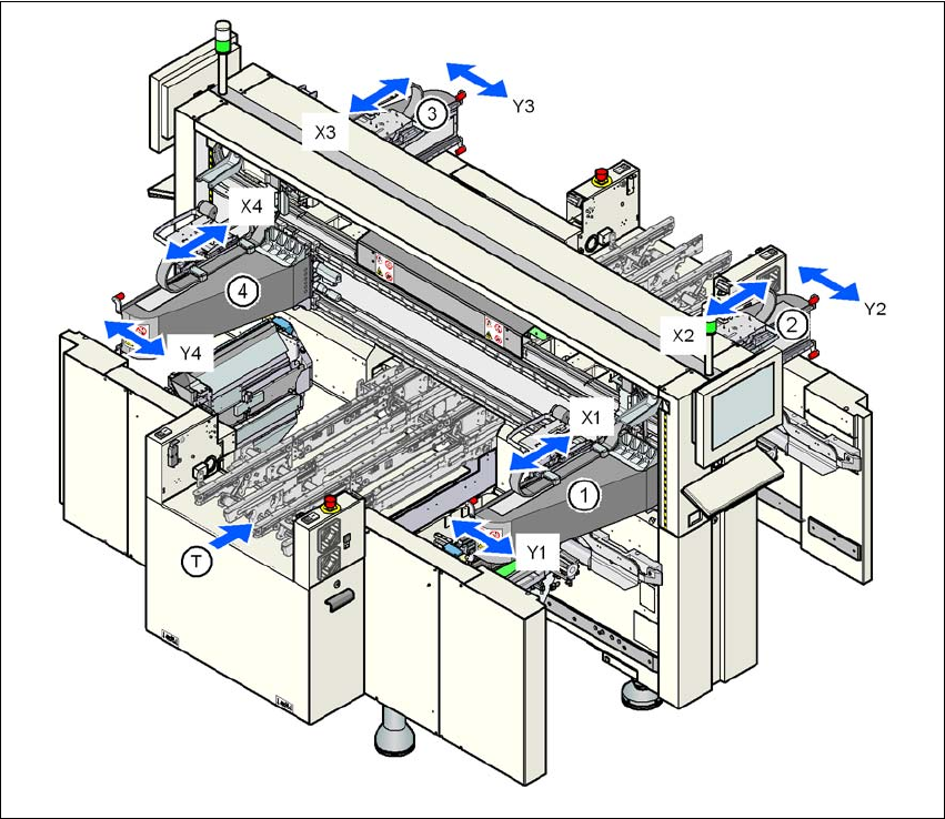 사용자 매뉴얼 SIPLACE X 시리즈 3 장비 기술 데이타 소프트웨어 버전 SR.70x.xx 에서 2 011 년 1 월 한국 판 3.6 갠트리 시스템 141 3.6 갠트리 시스템 3.6.1 갠트리 위치 3.6.1.1 X4I 실장기의 갠트리 위치 3 그림 3.6 - 1 X4I 실장기의 갠트리 위치 (1), (2), (3), (4) ( 갠트리 1, 갠트리 2, 갠트리 3, 갠트리 4) X1 X…