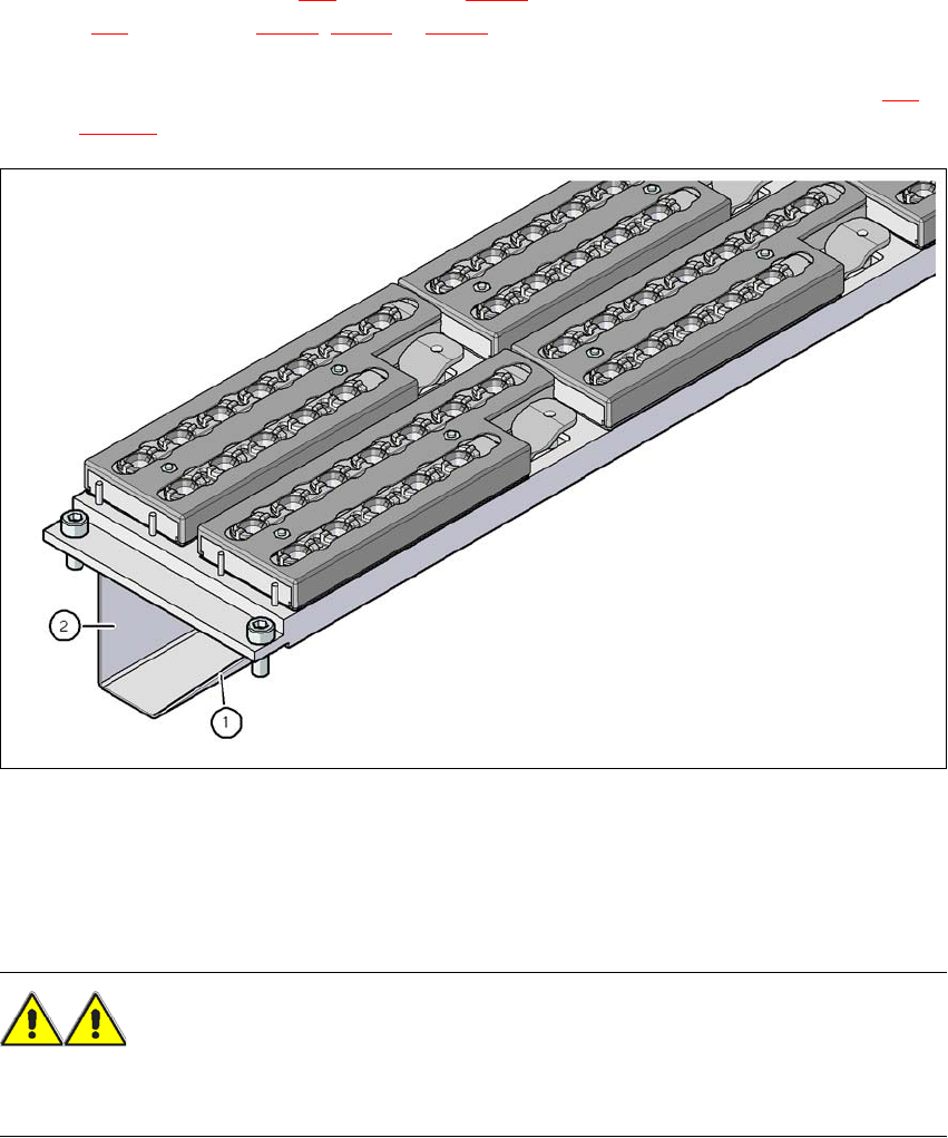 SpeedStar 실장헤드의 1 및 3 위치 ( 그림 6.1 - 5 의 항목 1 및 항목 2) 에 노즐 교환기를 한개 혹은