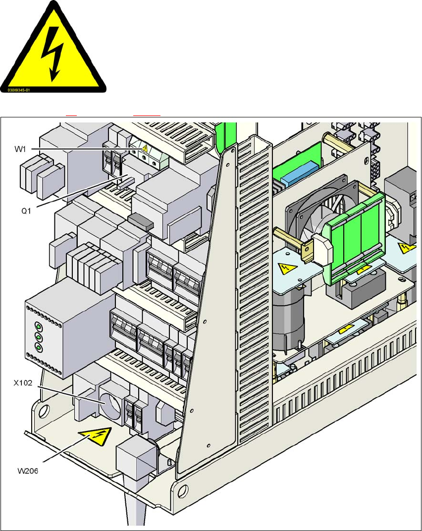 사용자 매뉴얼 SIPLACE X 시리즈 2 작동상의 안전 소프트웨어 버전 SR.70x.xx 에서 2 011 년 1 월 한국 판 2.2 경고 라벨 51 2.2.4 전원 공급기에 있는 경고 라벨 2 위치 W206, 제 51 페이지 그림 2.2 - 6 참조 품목 번호 03009345-01( 실장기당 개수 : 1) 및 위치 W1 그림 2.2 - 6 서비스 소켓 X102 위의 W206 경고 라벨 및 …