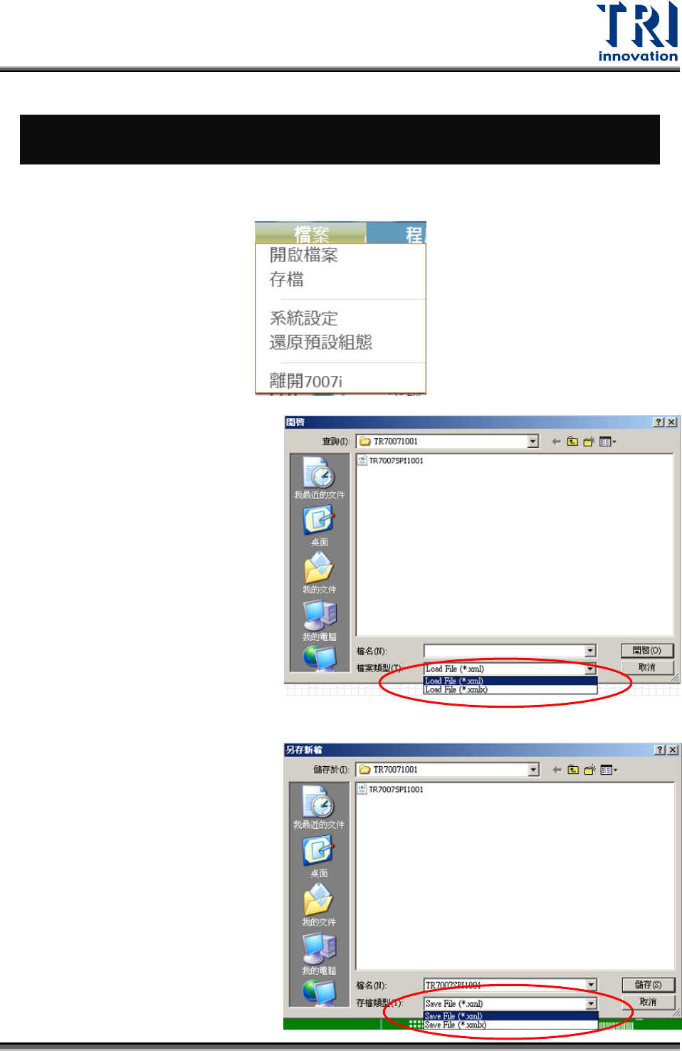 7007i 介面僅開啟 xml 檔或者