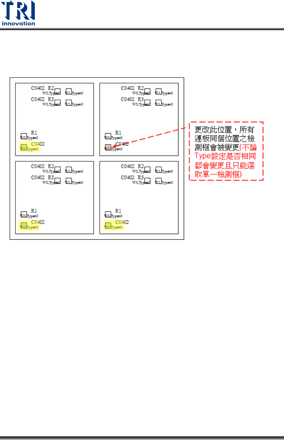 所有板的此位置:套用至所有單板上同一位置的檢測框。