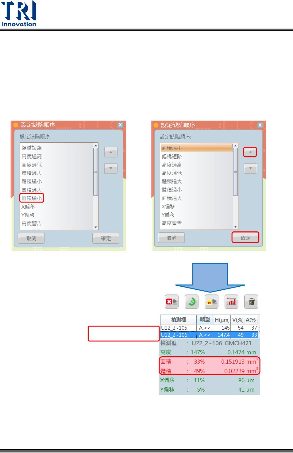 操作步驟:以設定面積過小為不良類型最優先為例