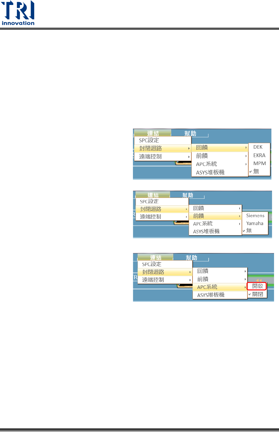 封閉迴路為一個讓生產線前三站(錫膏印刷機、錫膏檢測機、打件機)可自動互相傳遞