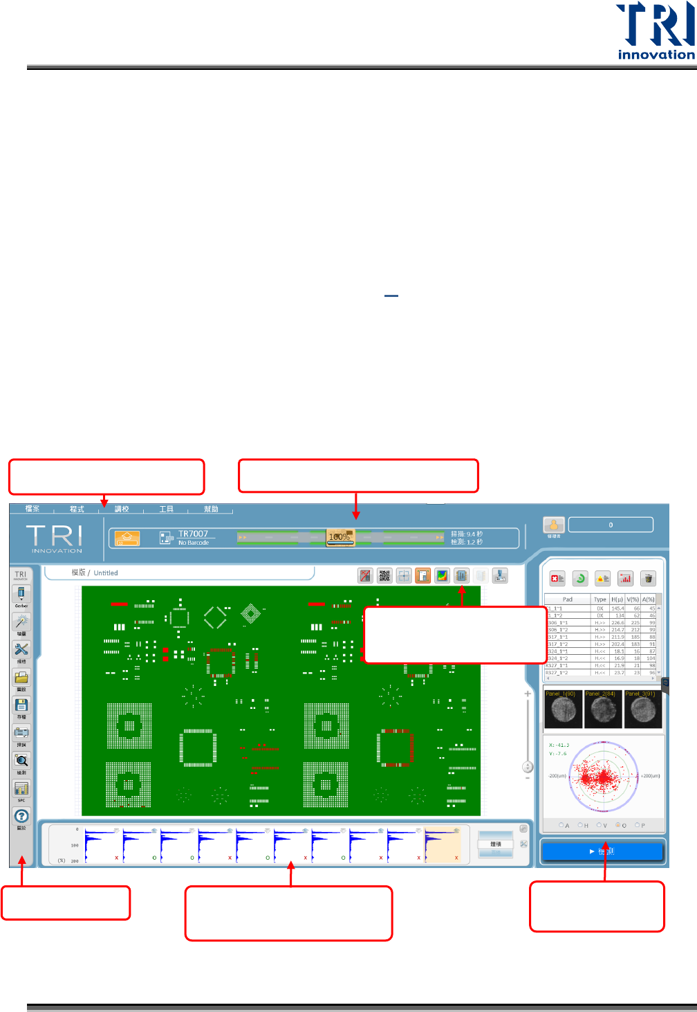 上的方便,本手冊所刊載的內容,一律使用 TR7007 或 SPI 來代表檢測設備而不詳列