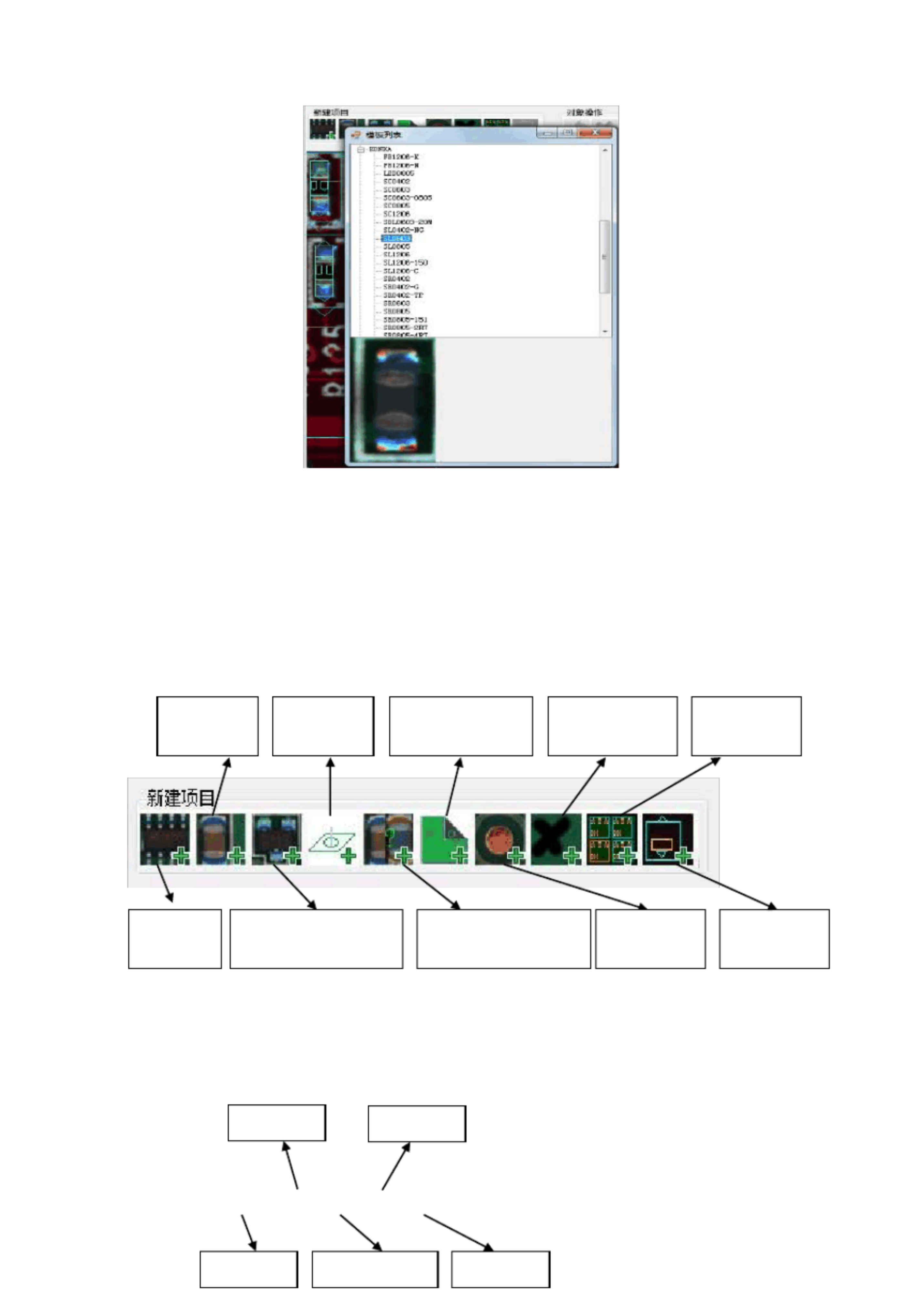 1)当光标落在某一元件模板子库上时,会在界面下方显示此元件子库的具体图片,如上图