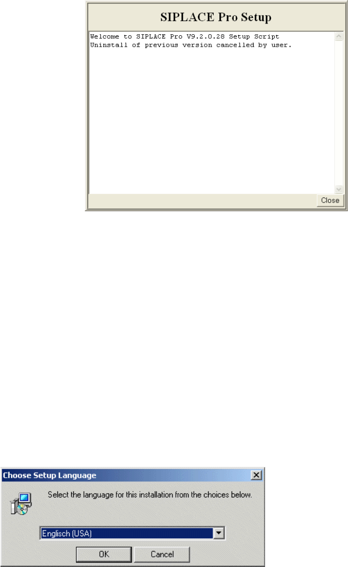 4 Installation of SIPLACE Pro and possible Setup Types Installation Manual Edition 05/2011 SIPLACE Pro 9.3 23 If you've cancelled Setup (or ot her errors occu rred) during a step, a close button will be show n after…