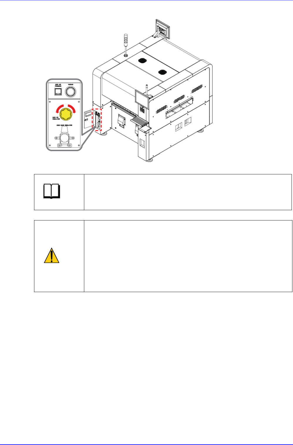 3. 打开设备前面左侧盖子,旋转Regulator把手,将气动设定为0.45~0.55 Mpa