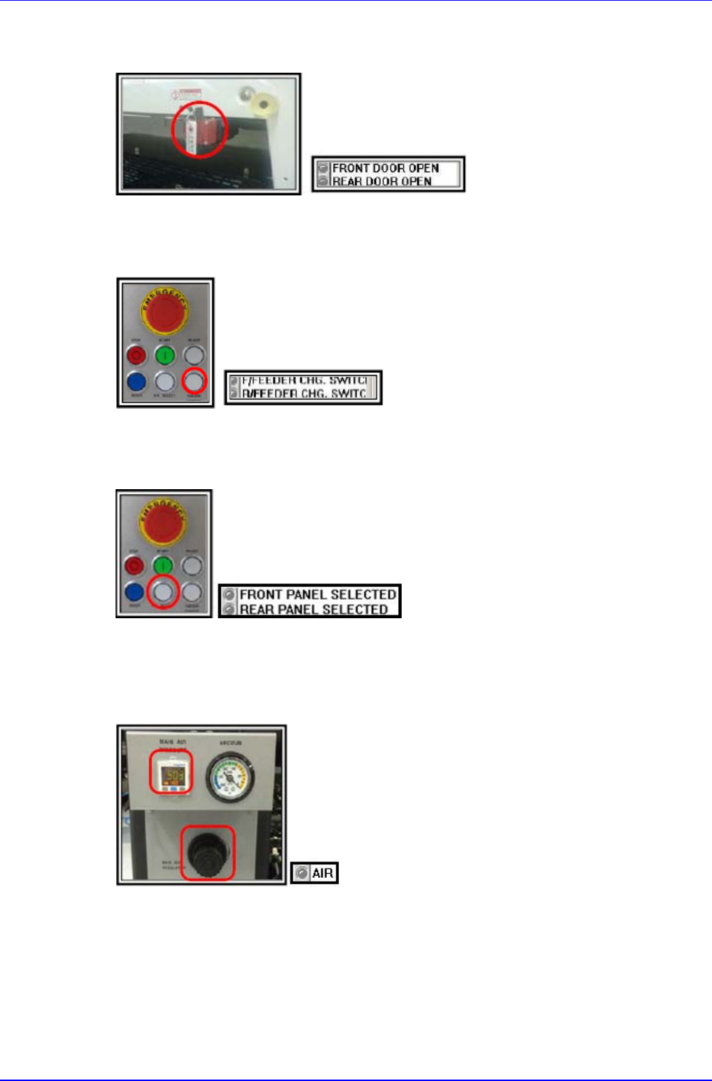 试运转 2-27 确认前面维护键启动 启动前面维护键后,确认 输入侧 I/O 是否正常启动 确认供应器浮起传感器启 动 感应到前 / 后方供应器浮起 传感器时,确认输入侧 I/O 是否正常启动 确认前后面示教盒启动 将示教盒附着于设备前面 / 后面后,确认输入侧 I/O 是 否正常启动 确认前、后面示教盒紧急 停止开关启动 按下前 / 后方示教盒紧急停止开关后,确认输 入侧 I/O 是否正常启动