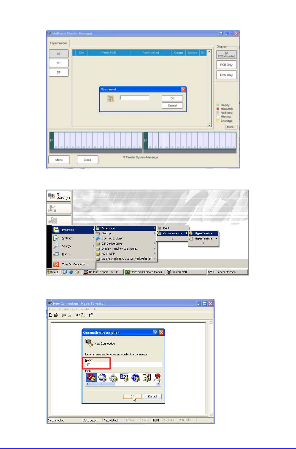 附件 3-31 第 3 章 . 附件 3.1. 安装 IT 功能 为能够使用 IT 功 能,将程序安装于设备,并进行 设定。 3.1.1. 设定 MMI 为使 MMI 上能够使用 IT 功能,进行设定。 ■ 工作顺序 1. 安装 MMI 后,变更 系统常数 设定值 系统常数 10 号 <OPT IQ FEEDER> 项目 : 0 → 1 2. 点击 MMI 右上方的 <IT Manager> 按钮 3. 在 …