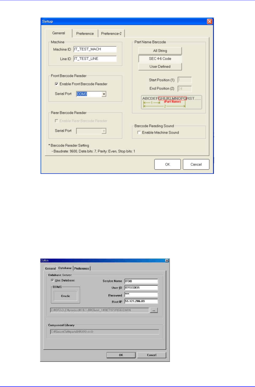 9. 在General标签,设定前后面Barcode读取器的Serial Port
