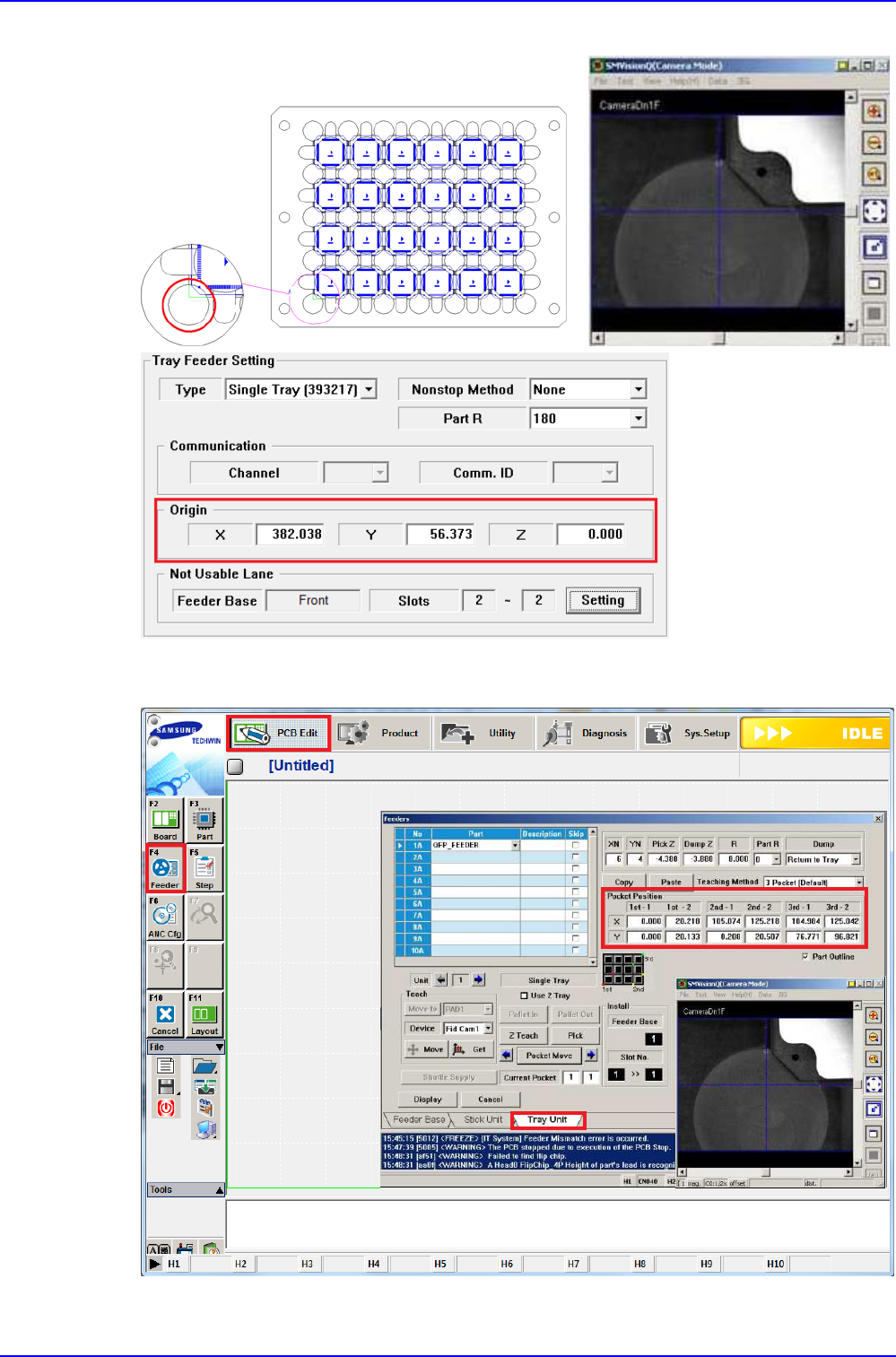 9. 选择<PCB Edit> → <Feeder> → <Tray Unit>后,确认<Pocket Position>位置