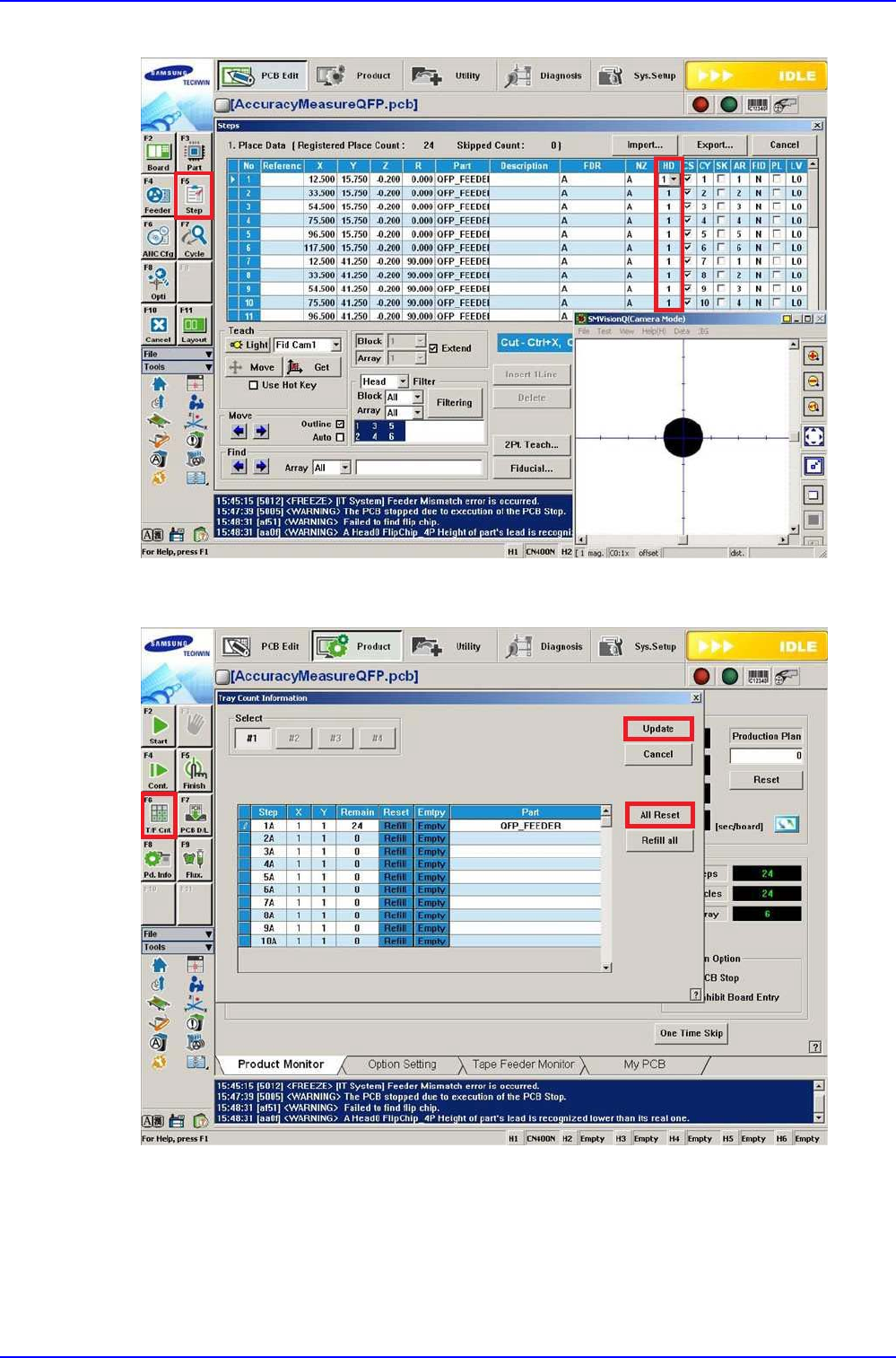 17. 点击<Product> → <T/F Cnt> → <All Reset>后,点击<Update>